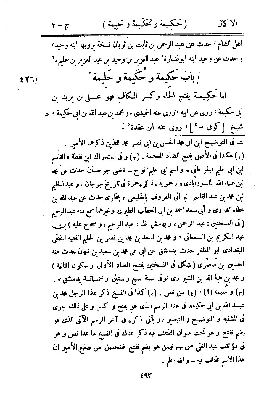 3 كذا في النسخ ذكر هذا الرجل محمد بن عبد الله بن أبي حكيمة في هذا الرسم الذي هو بفتح وكسر وعلى ذلك جرى في المشتبه والتوضيح والتبصير. ويأتي ذكره في آخر الرسم الآتي الذي هو بضم ففتح وهو تحت عنوان المختلف فيه ذكر هناك في النسخ ما عدا نص وهو في مؤتلف عبد الغني ص33 فيمن هو بضم ففتح فيتحصل من صنيع الأمير أن هذا الاسم مختلف فيه، والله أعلم.