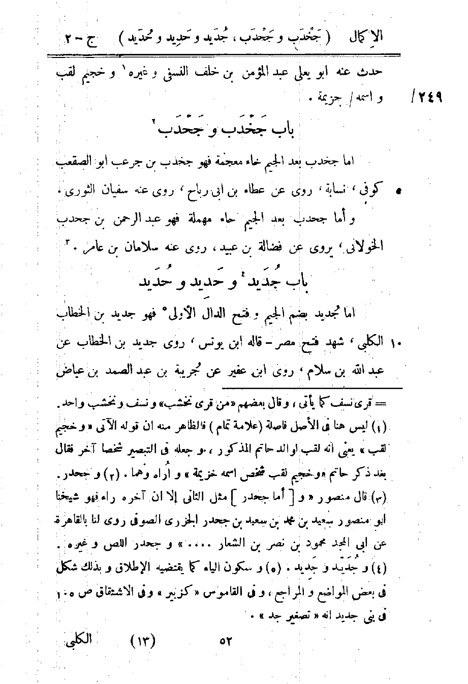 2 قال منصور "و [أما جحدر] مثل الثاني إلا أن آخره راء فهو شيخنا أبو منصور سعيد بن محمد بن سعيد بن جحدر الجزري الصوفي روى لنا بالقاهرة عن أبي المجد محمود بن نصر بن الشعار ... " وجحدر اللص وغيره.