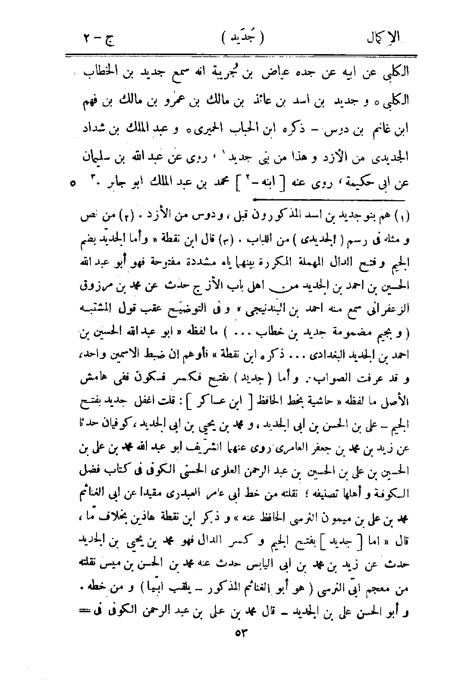 3 قال ابن نقطة "وأما الجديد بضم الجيم وفتح الدال المهملة المكررة بينهما ياء مشددة مفتوحة فهو أبو عبد الله الحسين بن أحمد بن الجديد