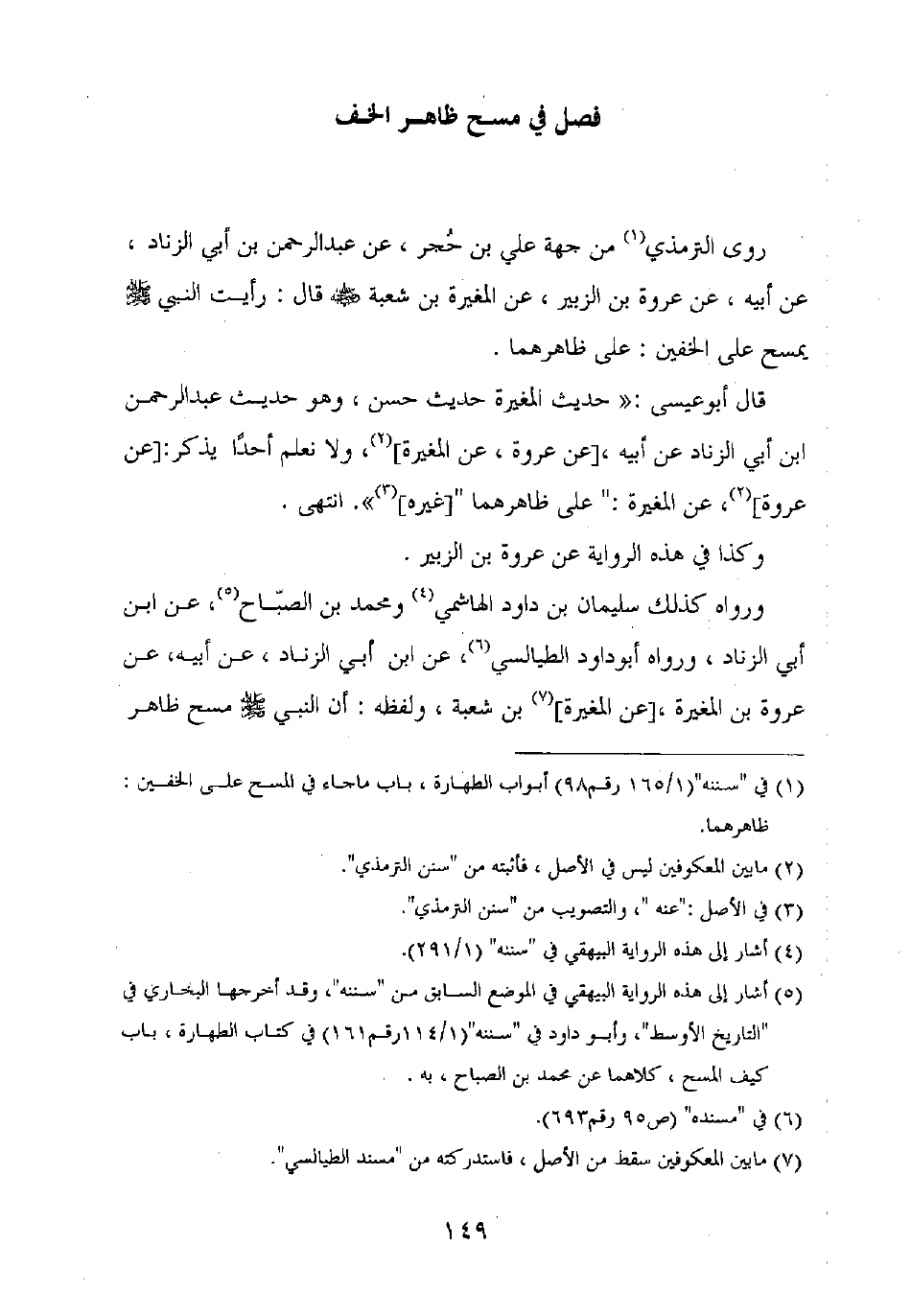 قال أبو عيسى: "حديث المغيرة حديث حسن، وهو حديث عبد الرحمن بن أبي الزناد عن أبيه، [عن عروة، عن المغيرة]، ولا نعلم أحدا يذكر: [عن عروة]، عن المغيرة: "على ظاهرهما" [غيره] ". انتهى.