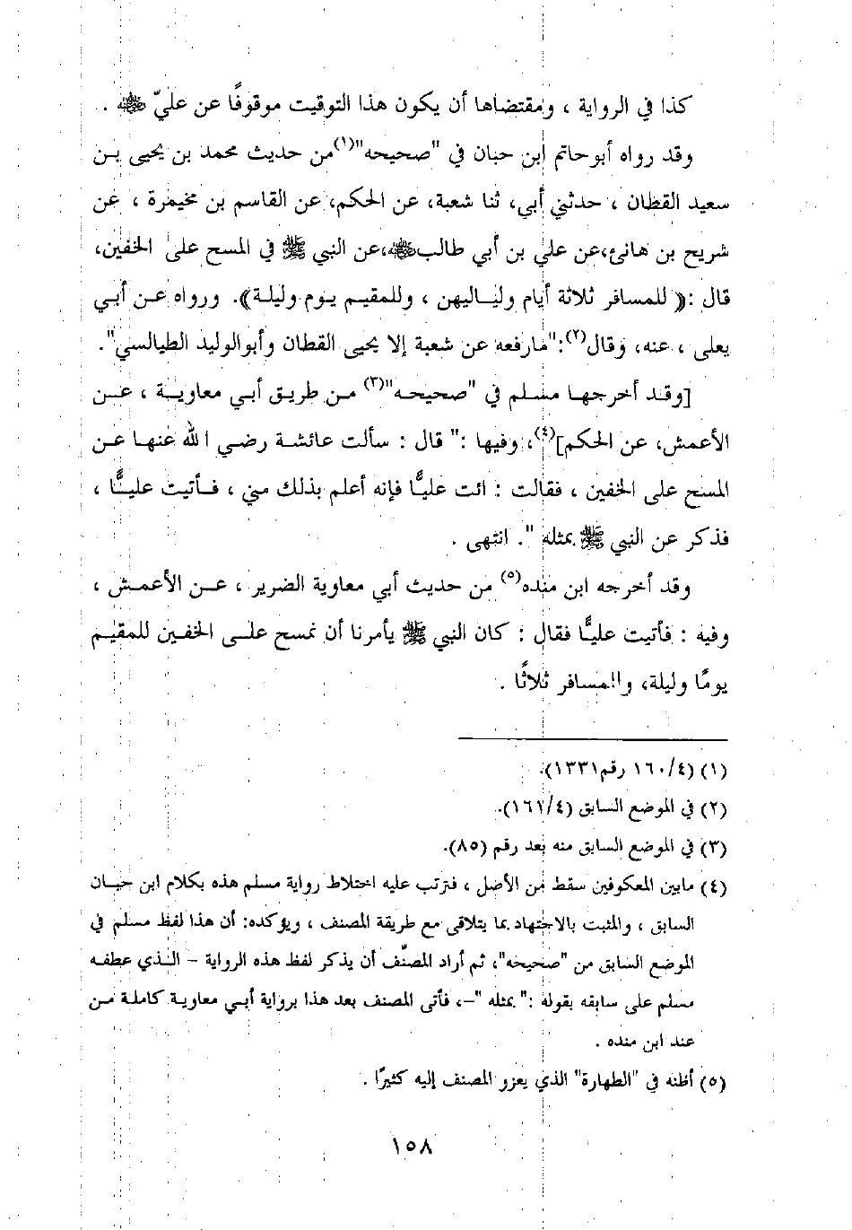وقد رواه أبو حاتم ابن حبان في "صحيحه" من حديث محمد بن يحيى بن سعيد القطان، حدثني أبي، ثنا شعبة، عن الحكم، عن القاسم بن مخيمرة، عن شريح بن هانئ، عن علي بن أبي طالب رضي الله عنه، عن النبي صلى الله عليه وسلم في المسح على الخفين، قال: "للمسافر ثلاثة أيام ولياليهن، وللمقيم يوم وليلة". ورواه عن أبي يعلى عنه، وقال: "ما رفعه عن شعبة إلا يحيى القطان وأبو الوليد الطيالسي".