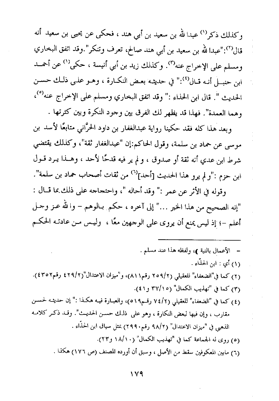 وكذلك ذكر عبد الله بن سعيد بن أبي هند، فحكى عن يحيى بن سعيد أنه قال: "عبد الله بن سعيد بن أبي هند صالح، تعرف وتنكر". وقد اتفق البخاري ومسلم على الإخراج عنه. وكذلك زيد بن أبي أنيسة، حكى عن أحمد بن حنبل أنه قال: "في حديثه بعض النكارة، وهو على ذلك حسن الحديث". قال ابن الحذاء: "وقد اتفق البخاري ومسلم على الإخراج عنه، وهما العمدة".