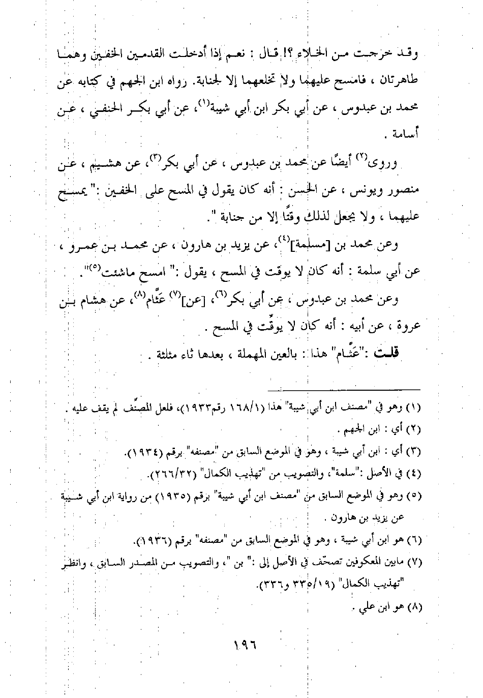 وقد خرجت من الخلاء؟! قال: نعم إذا أدخلت القدمين الخفين وهما طاهرتان، فامسح عليهما ولا تخلعهما إلا لجنابة. رواه ابن الجهم في كتابه عن محمد بن عبدوس، عن أبي بكر ابن أبي شيبة، عن أبي بكر الحنفي، عن أسامة.