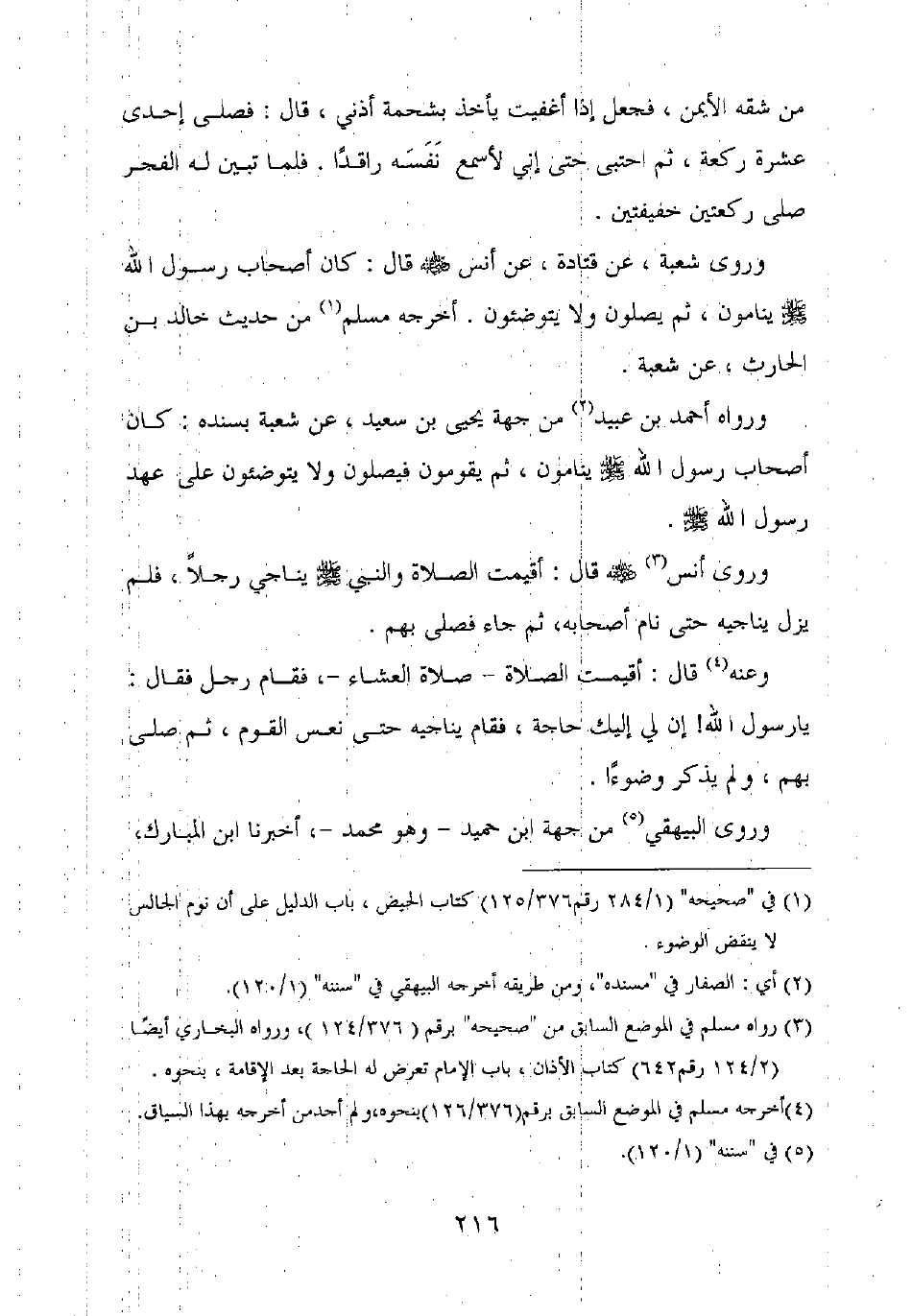 ورواه أحمد بن عبيد من جهة يحيى بن سعيد، عن شعبة بسنده: كان أصحاب رسول الله صلى الله عليه وسلم ينامون، ثم يقومون فيصلون ولا يتوضئون على عهد رسول الله صلى الله عليه وسلم.