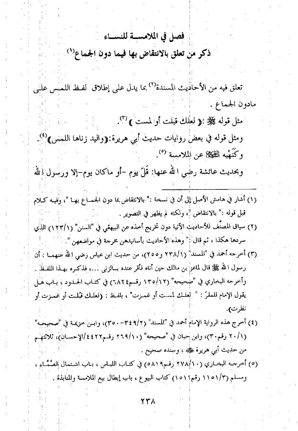 تعلق فيه من الأحاديث المسندة بما يدل على إطلاق لفظ اللمس على ما دون الجماع.