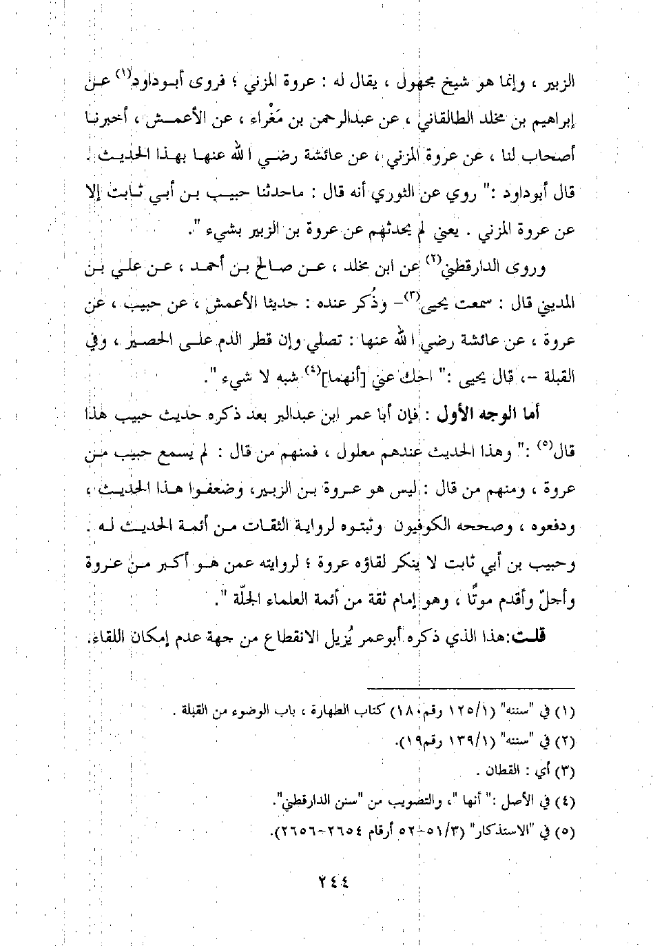 أما الوجه الأول: فإن أبا عمر ابن عبد البر بعد ذكره حديث حبيب هذا قال: "وهذا الحديث عندهم معلول، فمنهم من قال: لم يسمع حبيب من عروة، ومنهم من قال: ليس هو عروة بن الزبير، وضعفوا هذا الحديث، ودفعوه، وصححه الكوفيون وثبتوه لرواية الثقات من أئمة الحديث له.