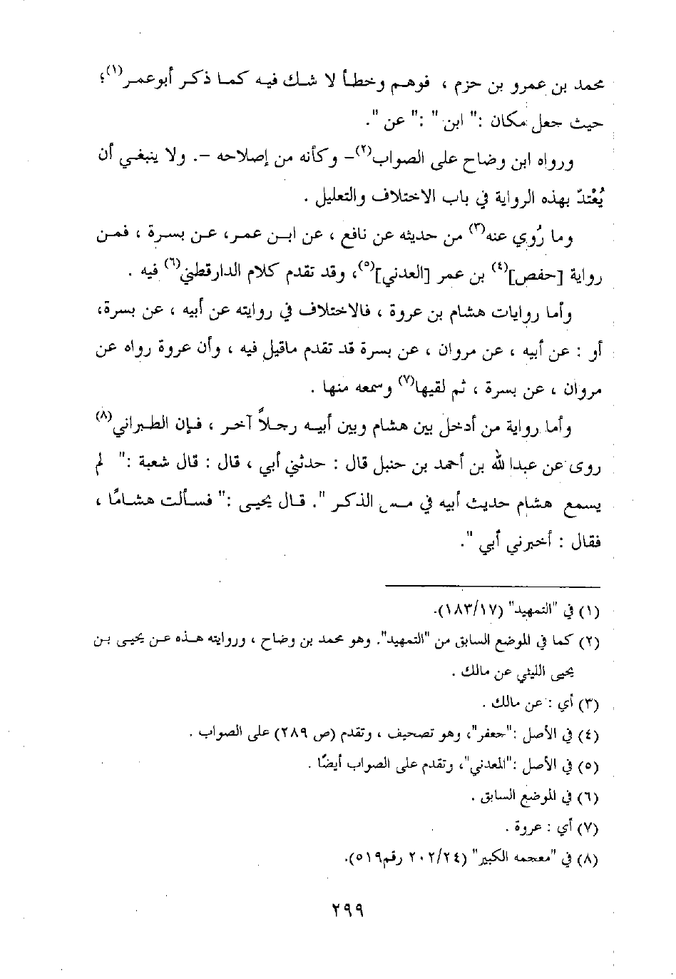 وأما روايات هشام بن عروة، فالاختلاف في روايته عن أبيه، عن بسرة، أو: عن أبيه، عن مروان، عن بسرة قد تقدم ما قيل فيه، وأن عروة رواه عن مروان، عن بسرة، ثم لقيها وسمعه منها.