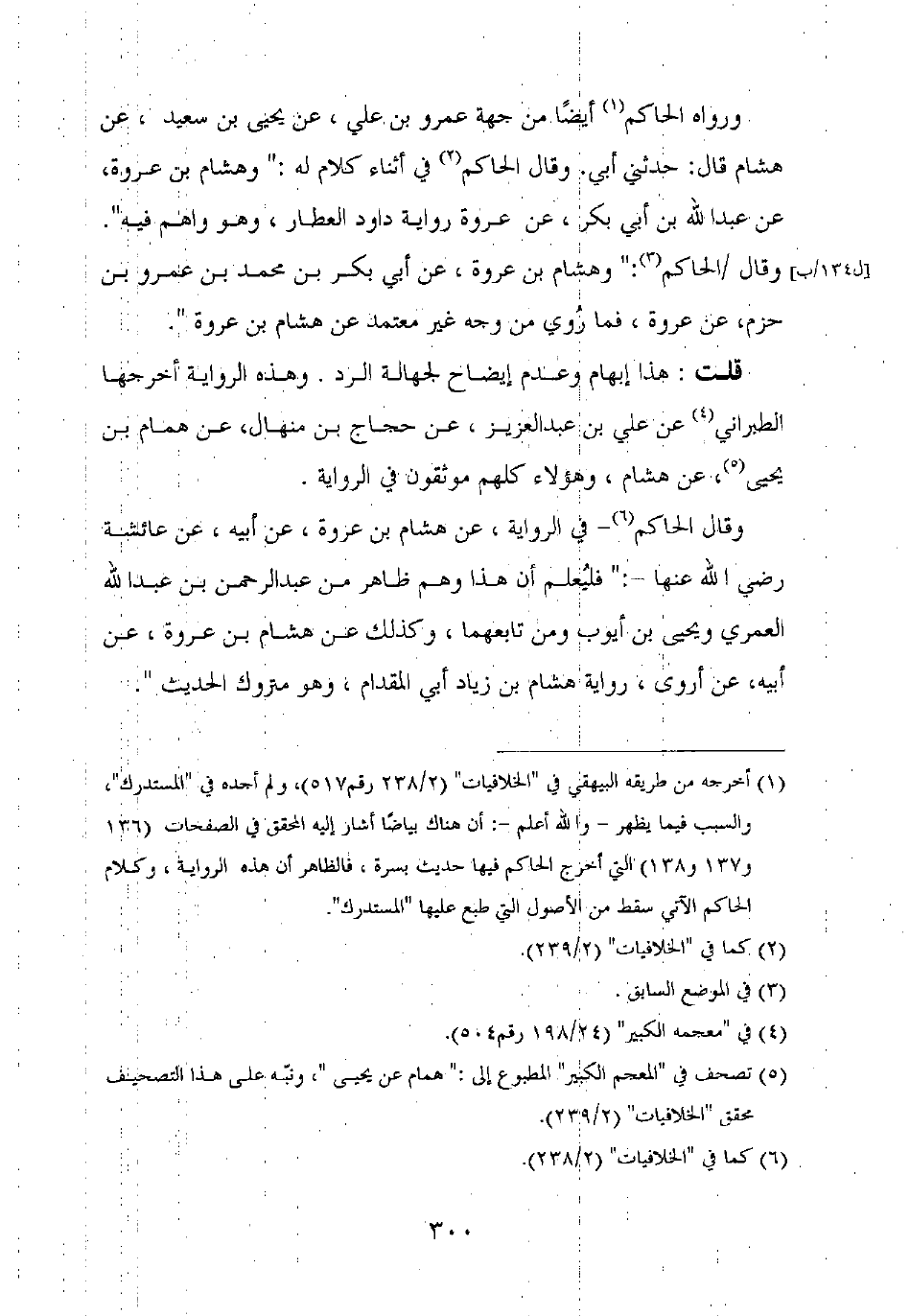 وقال الحاكم: "وهشام بن عروة، عن أبي بكر بن محمد بن عمرو بن حزم، عن عروة، فما روي من وجه غير معتمد عن هشام بن عروة".