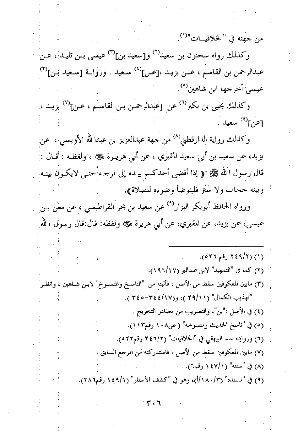 وكذلك رواية الدارقطني من جهة عبد العزيز بن عبد الله الأويسي، عن يزيد، عن سعيد بن أبي سعيد المقبري، عن أبي هريرة رضي الله عنه، ولفظه: قال: قال رسول الله صلى الله عليه وسلم: "إذا أفضى أحدكم بيده إلى فرجه حتى لا يكون بينه وبينه حجاب ولا ستر فليتوضأ وضوءه للصلاة".