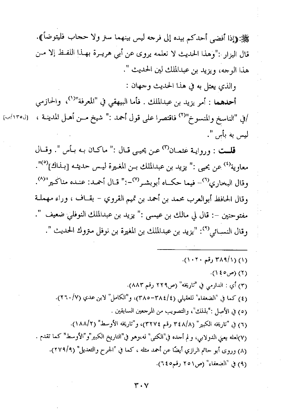 قلت: ورواية عثمان عن يحيى قال: "ما كان به بأس". وقال معاوية عن يحيى: "يزيد بن عبد الملك بن المغيرة ليس حديثه [بذاك] ".