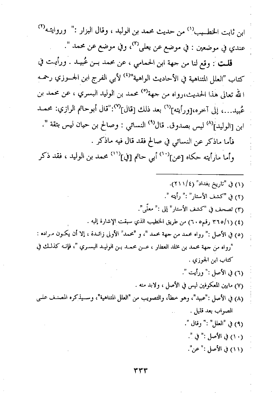 وأما ما رأيته حكاه [عن] أبي حاتم [في] محمد بن الوليد، فقد ذكر