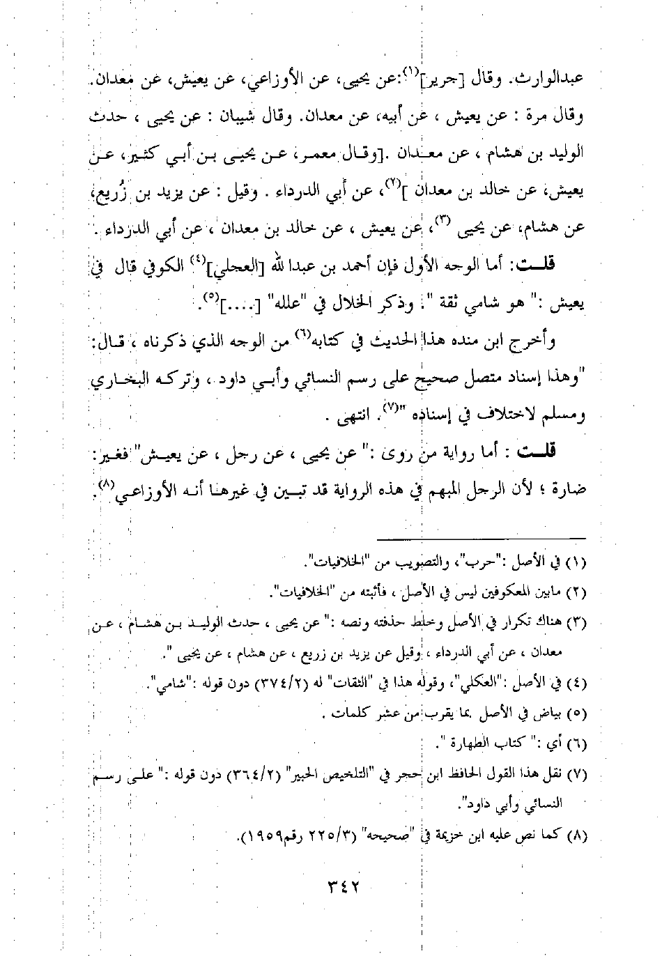 قلت: أما الوجه الأول فإن أحمد بن عبد الله [العجلي] الكوفي قال في يعيش: "هو شامي ثقة". وذكر الخلال في "علله" [ .... ].