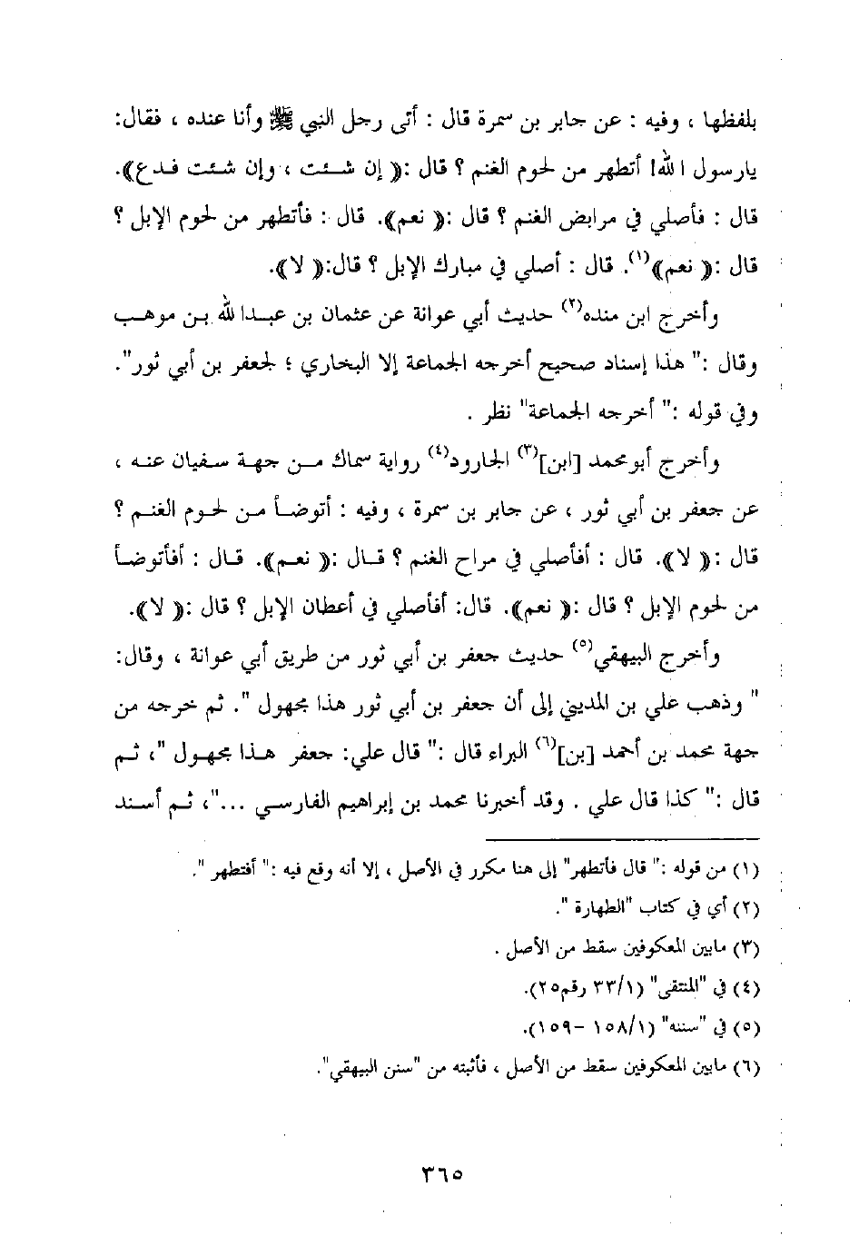 وأخرج أبو محمد [ابن] الجارود رواية سماك من جهة سفيان عنه، عن جعفر بن أبي ثور، عن جابر بن سمرة، وفيه: أتوضأ من لحوم الغنم؟