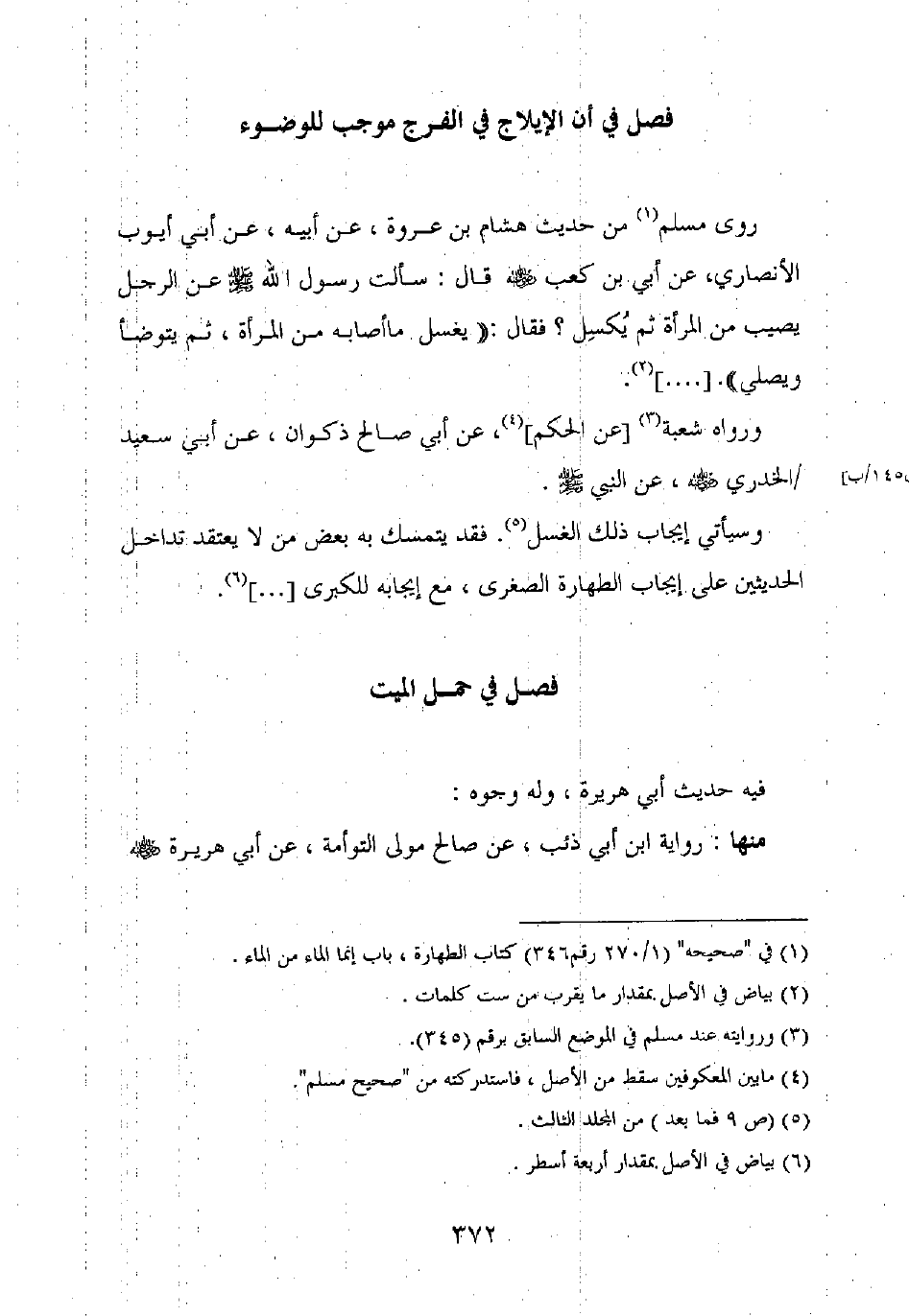 روى مسلم من حديث هشام بن عروة، عن أبيه، عن أبي أيوب الأنصاري، عن أبي بن كعب رضي الله عنه قال: سألت رسول الله صلى الله عليه وسلم عن الرجل يصيب من المرأة ثم يكسل؟ فقال: "يغسل ما أصاب من المرأة، ثم يتوضأ ويصلي". [ ...... ].