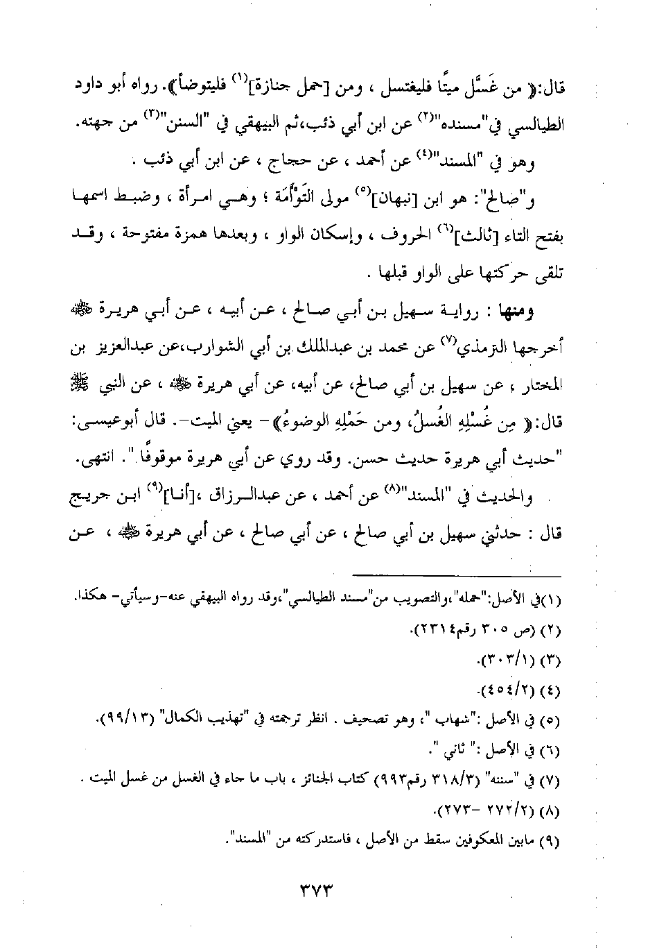 ومنها: رواية سهيل بن أبي صالح، عن أبيه، عن أبي هريرة رضي الله عنه أخرجها الترمذي عن محمد بن عبد الملك بن أبي الشوارب، عن عبد العزيز بن المختار، عن سهيل بن أبي صالح، عن أبيه، عن أبي هريرة رضي الله عنه، عن النبي صلى الله عليه وسلم قال: "من غسله الغسل، ومن حمله الوضوء" – يعني الميت –. قال أبو عيسى:
