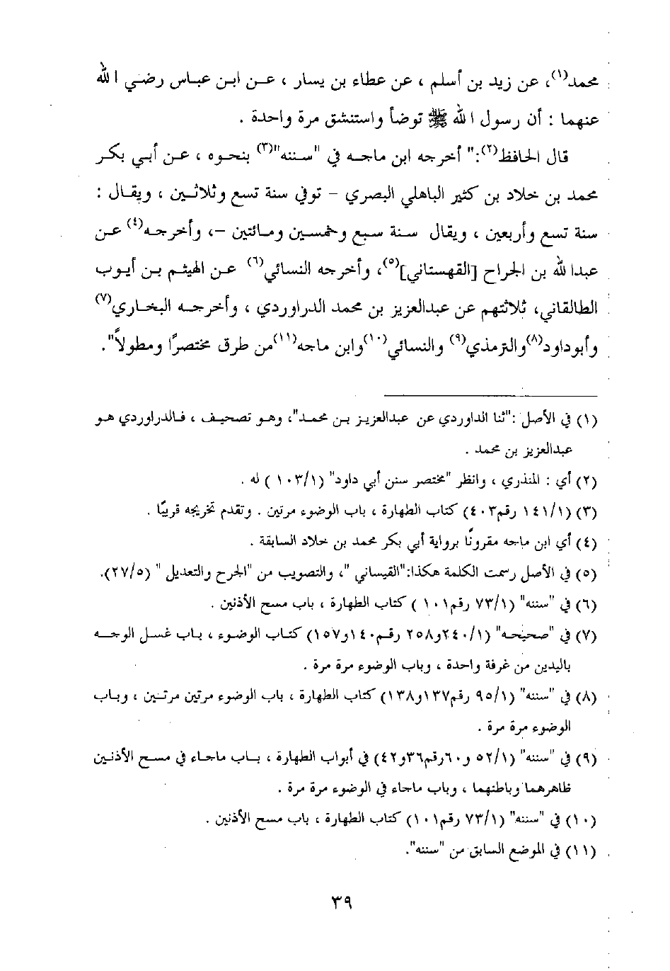 محمد، عن زيد بن أسلم، عن عطاء بن يسار، عن ابن عباس رضي الله عنهما: أن رسول الله صلى الله عليه وسلم توضأ واستنشق مرة واحدة.