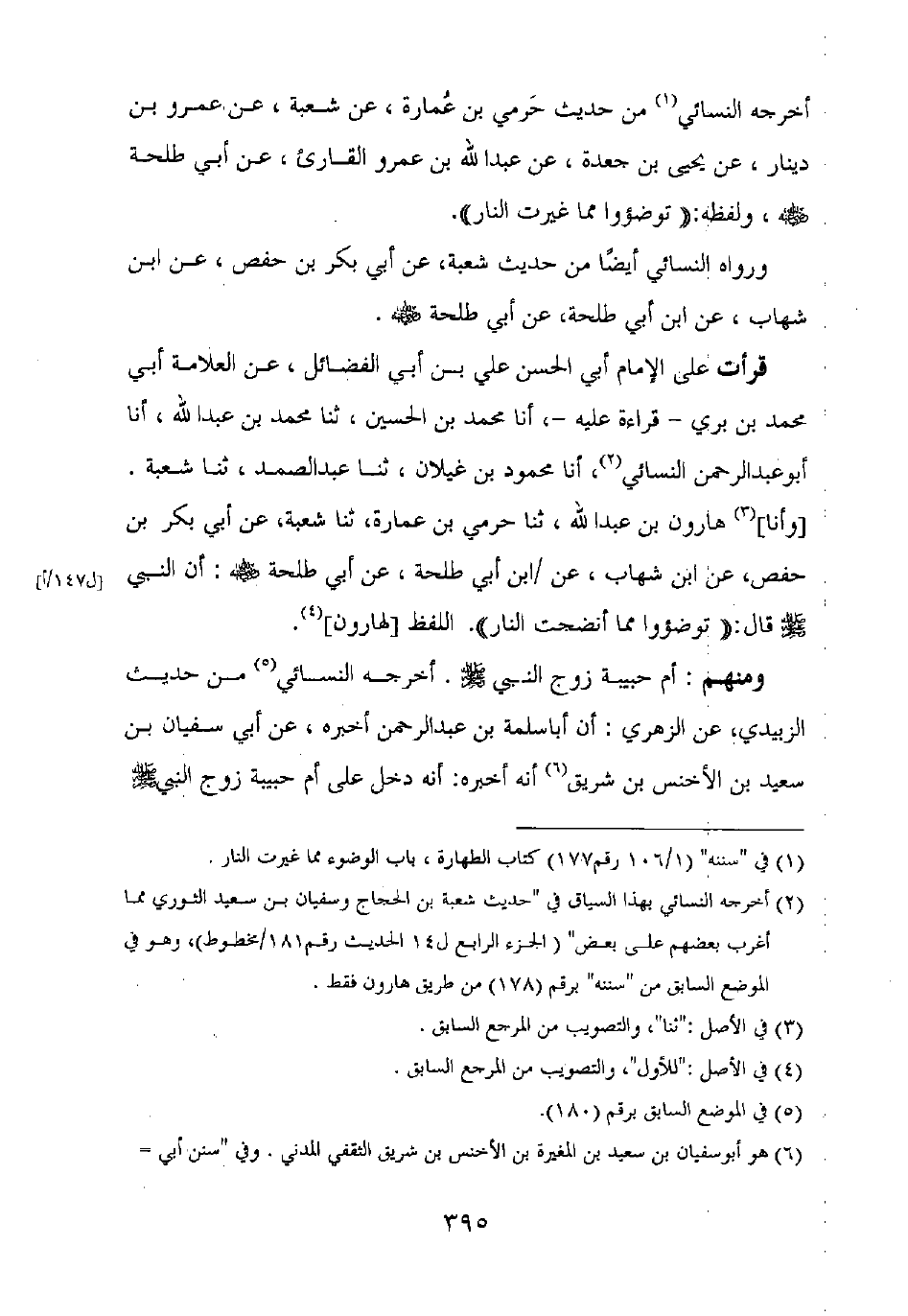 قرأت على الإمام أبي الحسن علي بن الفضائل، عن العلامة أبي محمد بن بري – قراءة عليه –، أنا محمد بن الحسين، ثنا محمد بن عبد الله، أنا أبو عبد الرحمن النسائي، أنا محمود بن غيلان، ثنا عبد الصمد، ثنا شعبة.