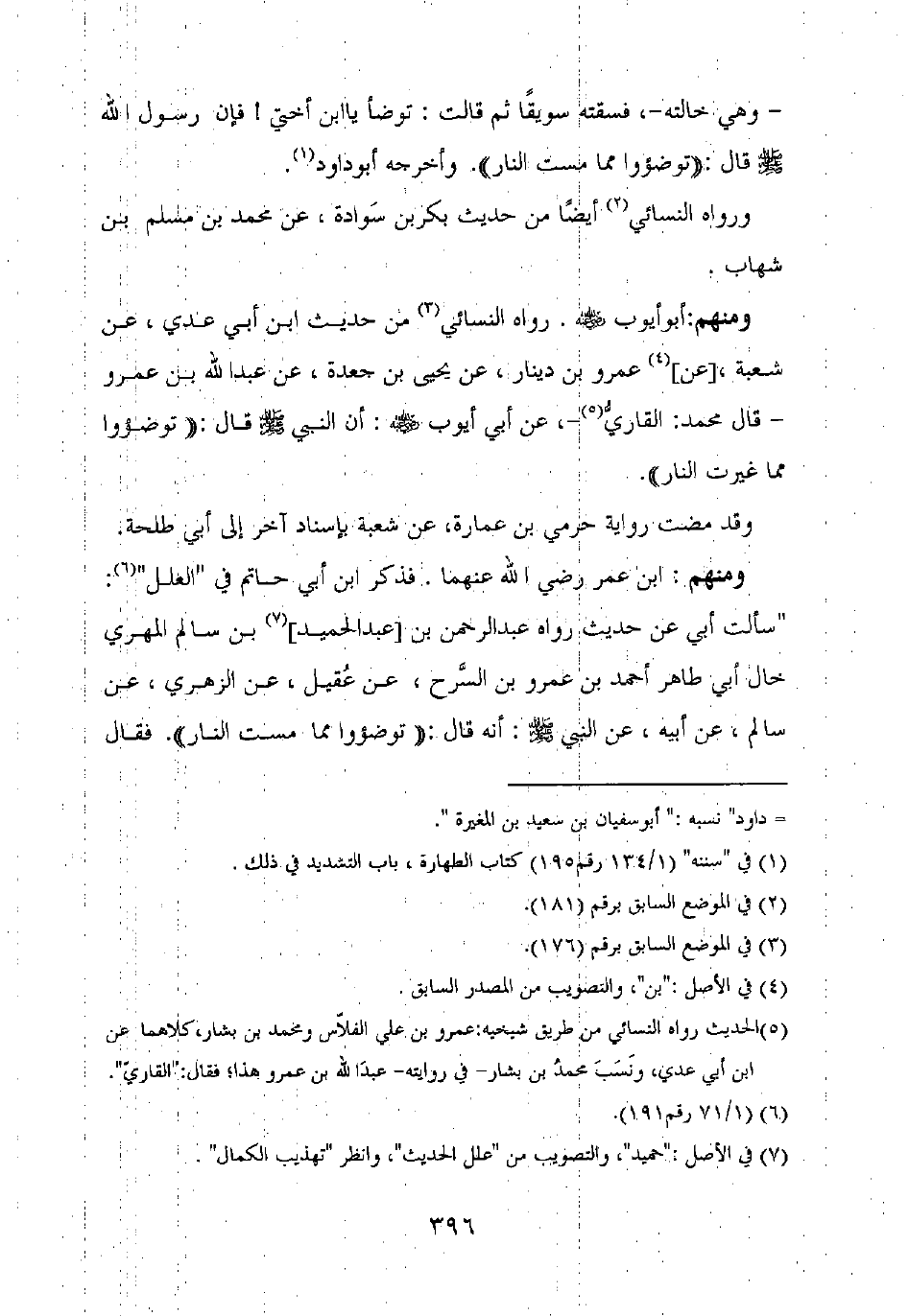 ومنهم: أبو أيوب رضي الله عنه. رواه النسائي من حديث ابن أبي عدي، عن شعبة، [عن] عمرو بن دينار، عن يحيى بن جعدة، عن عبد الله بن عمرو – قال محمد: القاري –، عن أبي أيوب رضي الله عنه: أن النبي صلى الله عليه وسلم قال: "توضؤوا مما غيرت النار".