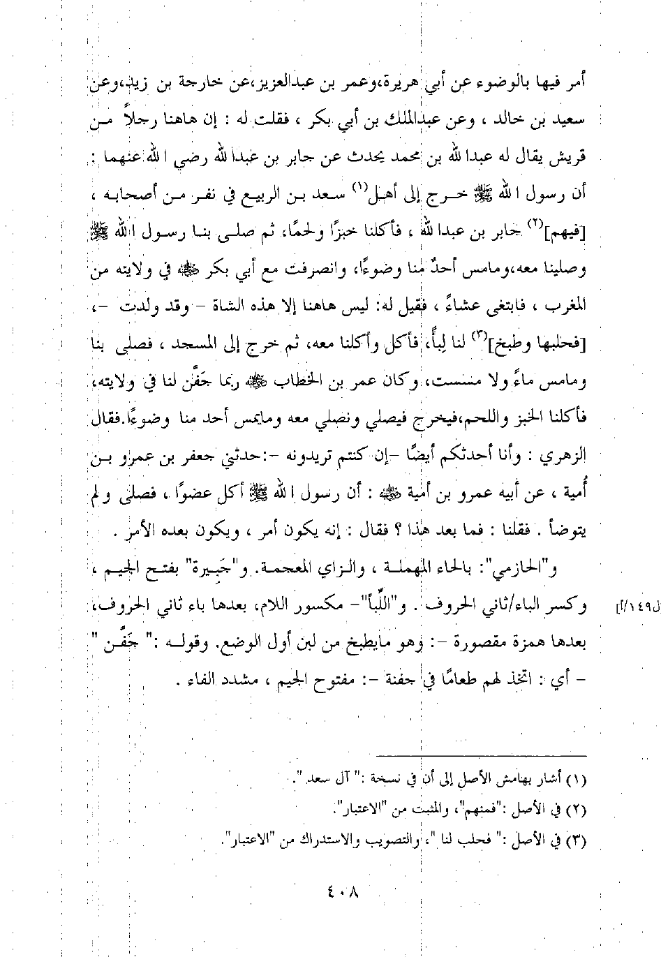 و"الحازمي": بالحاء المهملة، والزاي المعجمة. و"جبيرة" بفتح الجيم، وكسر الباء ثاني الحروف. و"اللبأ" – مسكور اللام، بعدها باء ثاني الحروف، بعدها همزة مقصورة –: وهو ما يطبخ من لبن أول الوضع. وقوله: "جفن" – أي: اتخذ لهم طعاما في جفنة –: مفتوح الجيم، مشدد الفاء.