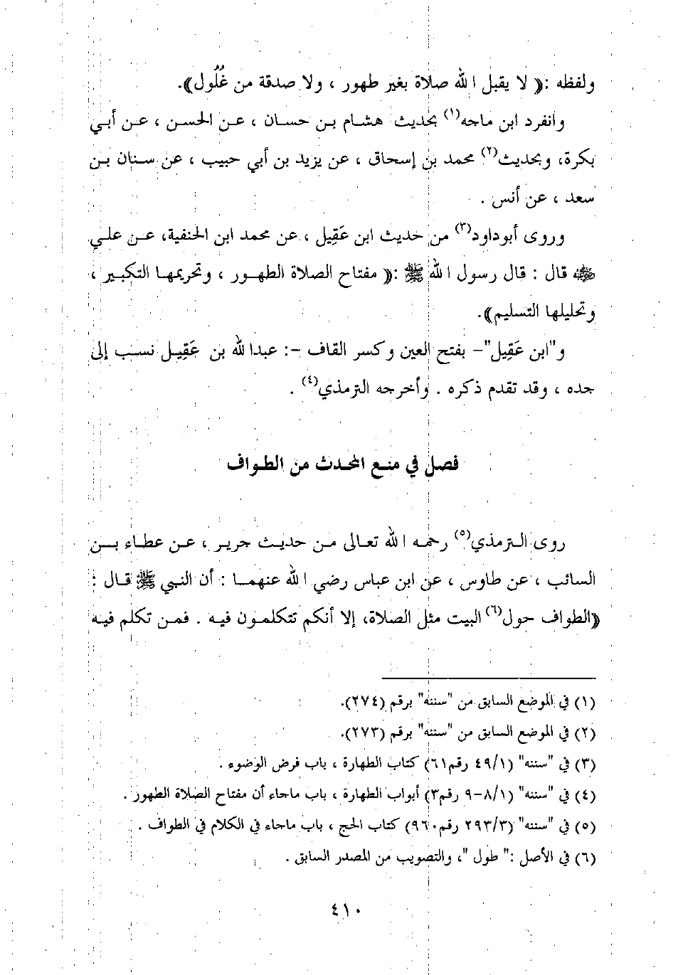 روى الترمذي رحمه الله تعالى من حديث جرير، عن عطاء بن السائب، عن طاوس، عن ابن عباس رضي الله عنهما: أن النبي صلى الله عليه وسلم قال: "الطواف حول البيت مثل الصلاة، إلا أنكم تتكلمون فيه. فمن تكلم فيه