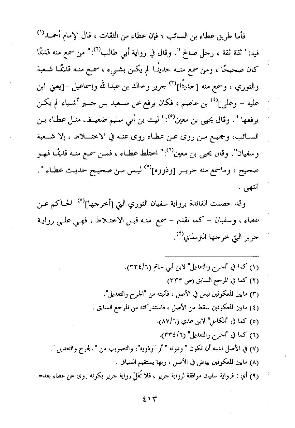 فأما طريق عطاء بن السائب، فإن عطاء من الثقات، قال الإمام أحمد فيه: "ثقة ثقة، رجل صالح". وقال في رواية أبي طالب: "من سمع منه قديما كان صحيحا، ومن سمع منه حديثا لم يكن بشيء، سمع منه قديما شعية والثوري، وسمع منه [حديثا] جرير وخالد بن عبد الله وإسماعيل -[يعني ابن علية - وعلي] بن عاصم، فكان يرفع عن سعيد بن جبير أشياء لم يكن يرفعها". وقال يحيى بن معين: "ليث بن أبي سليم ضعيف مثل عطاء بن السائب، وجميع من روى عن عطاء روى عنه في الاختلاط، إلا شعبة وسفيان". وقال يحيى بن معين: "اختلط عطاء، فمن سمع منه قديما فهو صحيح، وما سمع منه جرير [وذووه] ليس من صحيح حديث عطاء".