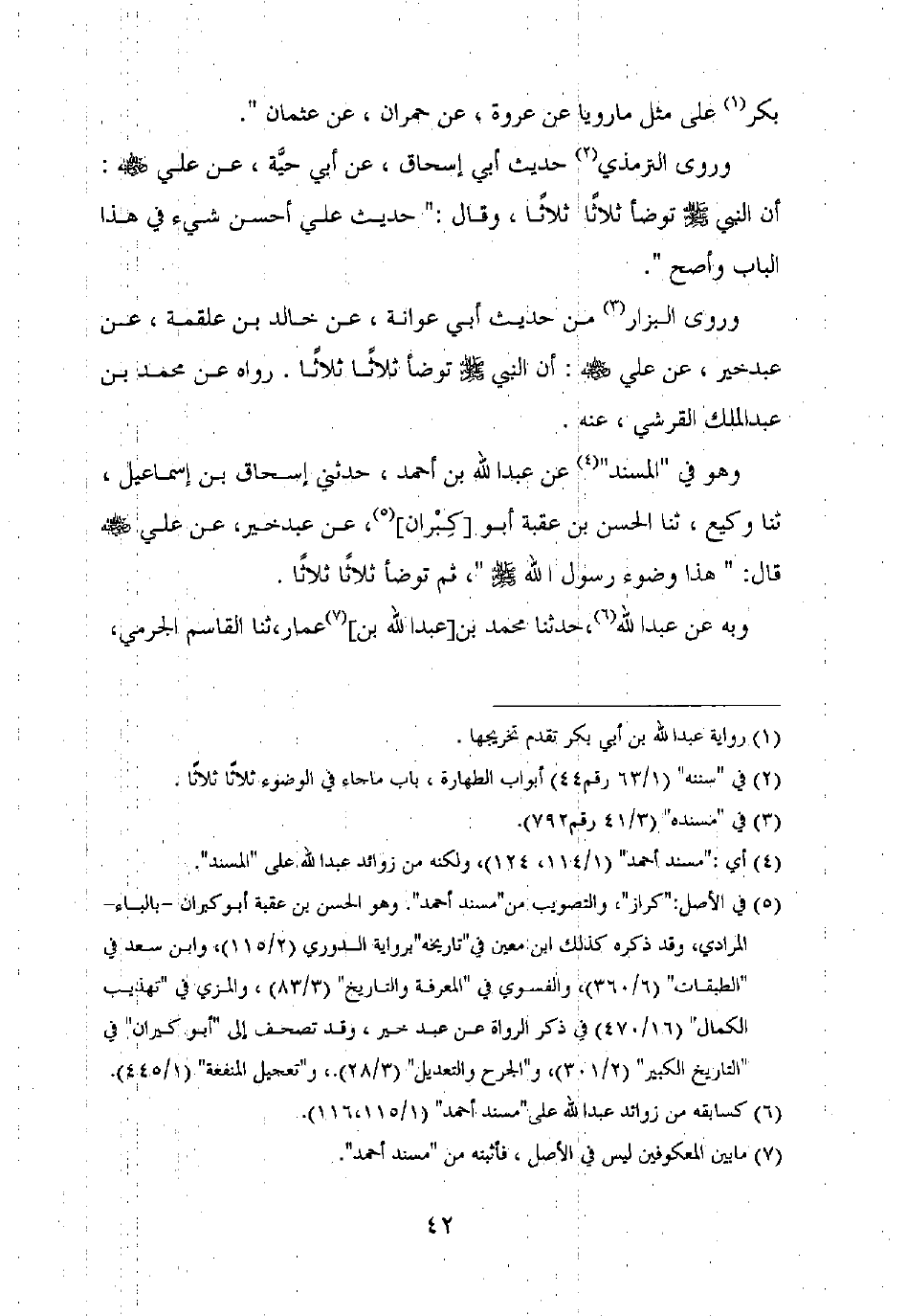 وهو في "المسند" عن عبد الله بن أحمد، حدثني إسحاق بن إسماعيل، ثنا وكيع، ثنا الحسن بن عقبة أبو [كبران]، عن عبد خير، عن علي رضي الله عنه قال: "هذا وضوء رسول الله صلى الله عليه وسلم "، ثم توضأ ثلاثا ثلاثا.