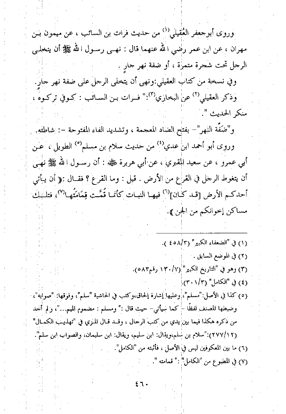 وفي نسخة من كتاب العقيلي: ونهى أن يتخلى الرجل على ضفة نهر جار.