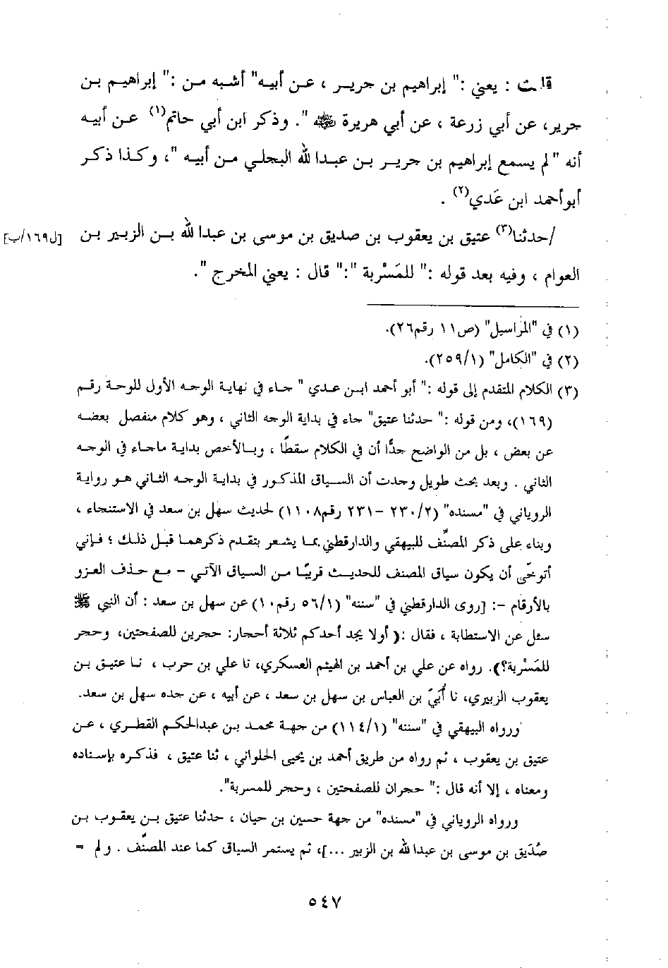قلت: يعني: "إبراهيم بن جرير، عن أبيه "أشبه من: " إبراهيم بن جرير، عن أبي زرعة، عن أبي هريرة رضي الله عنه ". وذكر ابن أبي حاتم عن أبيه أنه "لم يسمع إبراهيم بن جرير بن عبد الله البجلي من أبيه"، وكذا ذكر أبو أحمد ابن عدي.
