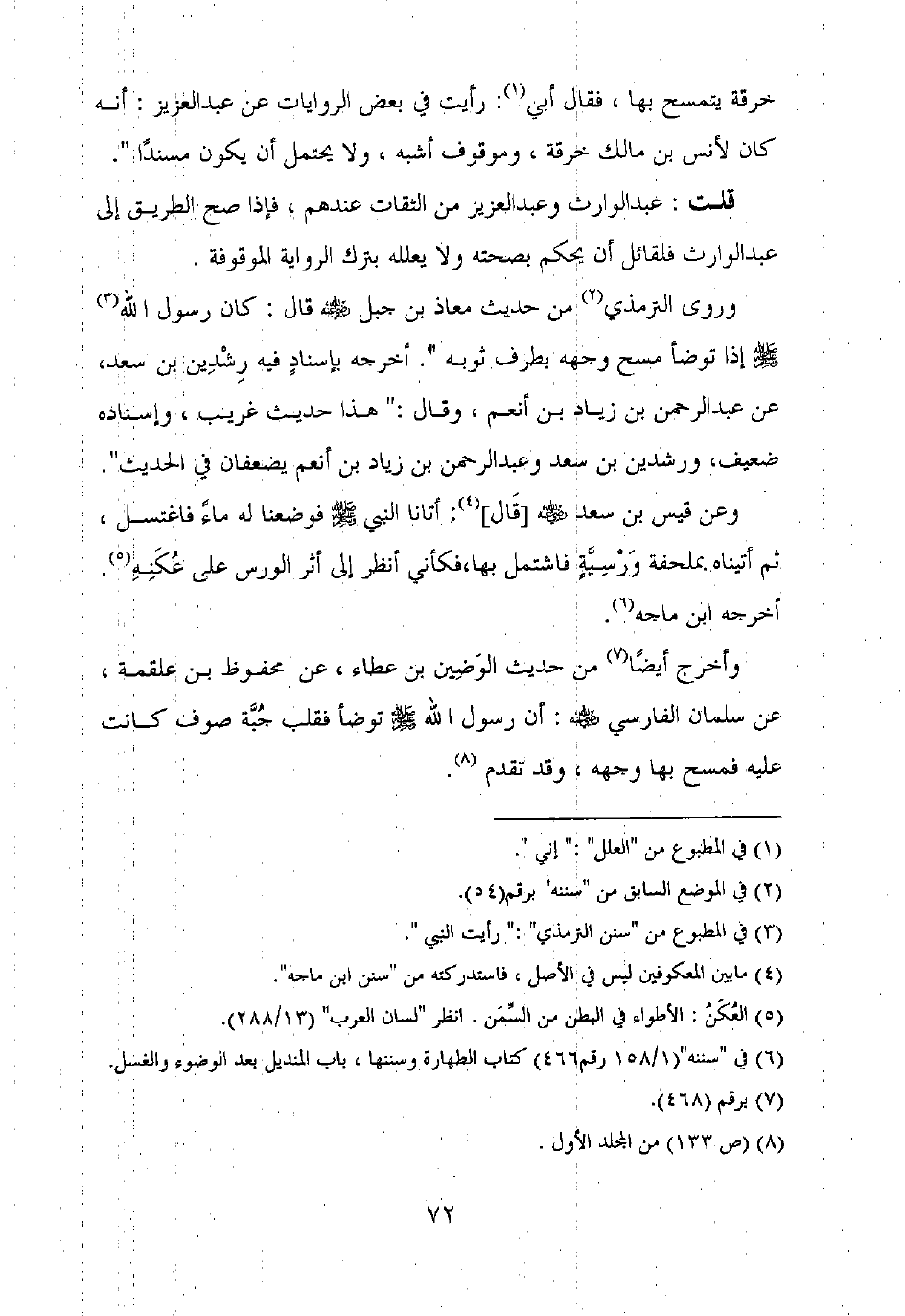 خرقة يتمسح بها، فقال أبي: رأيت في بعض الروايات عن عبد العزيز: أنه كان لأنس بن مالك خرقة، وموقوف أشبه، ولا يحتمل أن يكون مسندا".