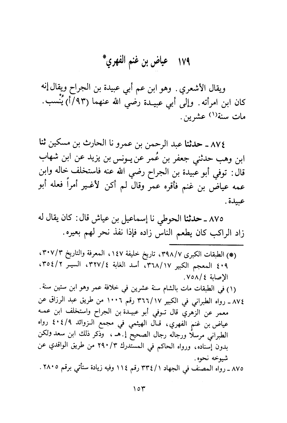 §عِيَاضُ بْنُ غَنْمٍ الْفِهْرِيُّ، وَيُقَالُ: الْأَشْعَرِيُّ وَهُوَ ابْنُ عَمِّ أَبِي عُبَيْدَةَ بْنِ الْجَرَّاحِ، وَيُقَالُ إِنَّهُ كَانَ ابْنَ امْرَأَتِهِ، وَإِلَى أَبِي عُبَيْدَةَ رَضِيَ اللَّهُ عَنْهُمَا يُنْسَبُ، مَاتَ سَنَةَ عِشْرِينَ