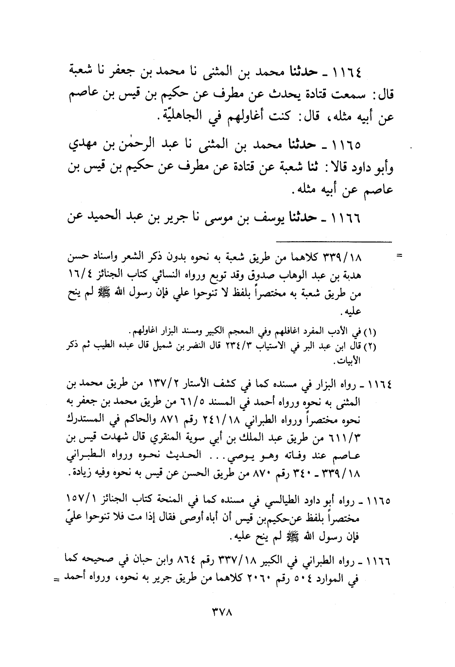 1166 - حَدَّثَنَا يُوسُفُ بْنُ مُوسَى، نا جَرِيرُ بْنُ عَبْدِ الْحَمِيدِ، عَنْ -[379]- مُغِيرَةَ، عَنْ أَبِيهِ، عَنْ شُعْبَةَ بْنِ التَّوْأَمِ قَالَ: قَالَ قَيْسُ بْنُ عَاصِمٍ رَضِيَ اللَّهُ عَنْهُ: سَأَلْتُ رَسُولَ اللَّهِ صَلَّى اللهُ عَلَيْهِ وَسَلَّمَ عَنِ الْحِلْفِ فَقَالَ: «§لَا حِلْفَ فِي الْإِسْلَامِ، وَلَكِنْ تَمَسَّكُوا بِحِلْفِ الْجَاهِلِيَّةِ»
