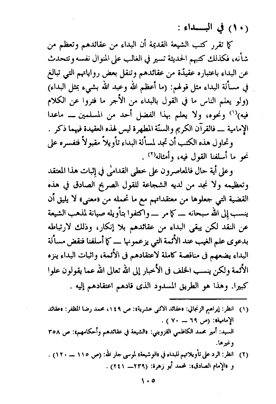 (¬2) انظر: الرد على تأويلاتهم للبداء في «الوشيعة» لموسى جار الله: (ص 115 - 120) . و «الإمام الصادق» : لمحمد أبو زهرة: (239- 241) .