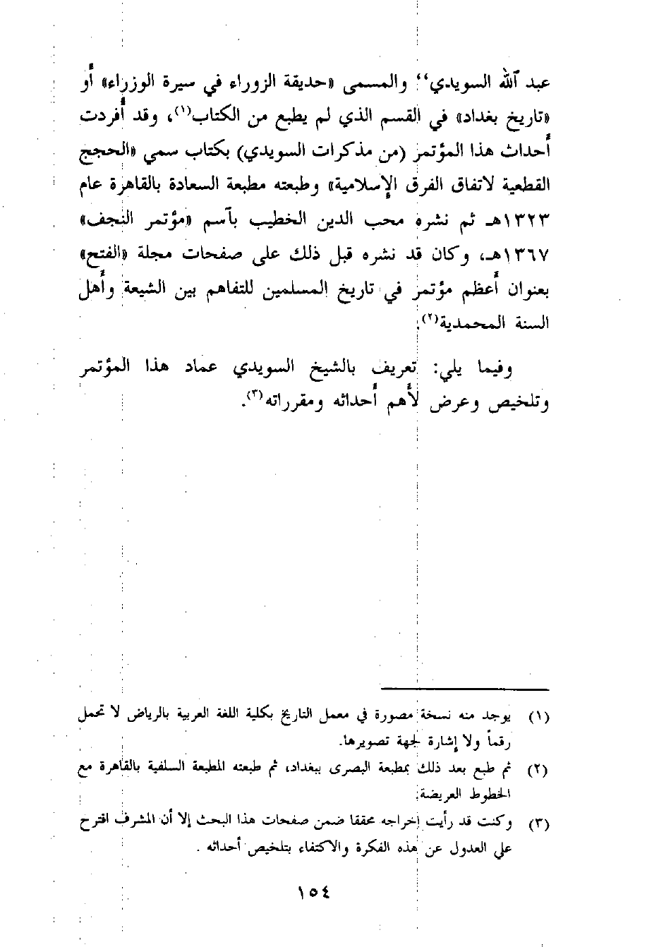 وأحداث هذا المؤتمر تضمنتها مذكرات علامة العراق عبد الله السويدي والتي سماها: «النفحة المسكية في الرحلة المكية» والتي لا تزال مخطوطة (¬4) ، كما تضمنها كتاب ابنه "عبد الرحمن بن عبد الله
