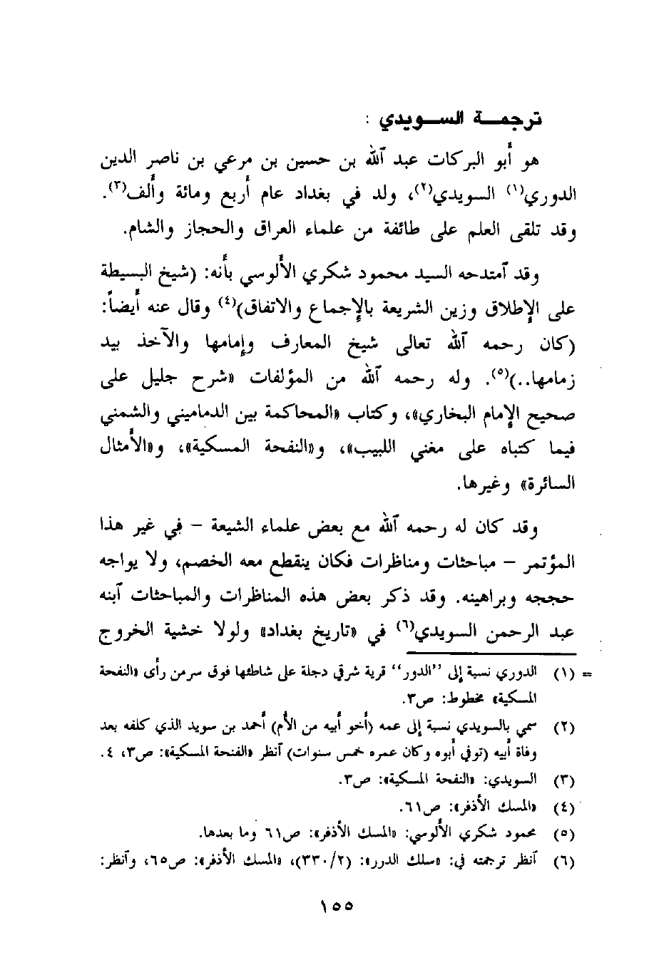 السويدي" والمسمى: «حديقة الزوراء في سيرة الوزراء» أو «تاريخ بغداد» في القسم الذي لم يطبع من الكتاب (¬1) ، وقد أفردت أحداث هذا المؤتمر (من مذكرات السويدي) بكتاب سُمّي: «الحجج القطعية لاتفاق الفرق الإسلامية» ، وطبعته مطبعة السعادة بالقاهرة عام 1323هـ، ثم نشره محب الدين الخطيب باسم «مؤتمر النجف» 1367هـ، وكان قد نشره قبل ذلك على صفحات مجلة «الفتح» بعنوان أعظم مؤتمر في تاريخ المسلمين للتفاهم بين الشيعة وأهل السنة المحمدية (¬2) .