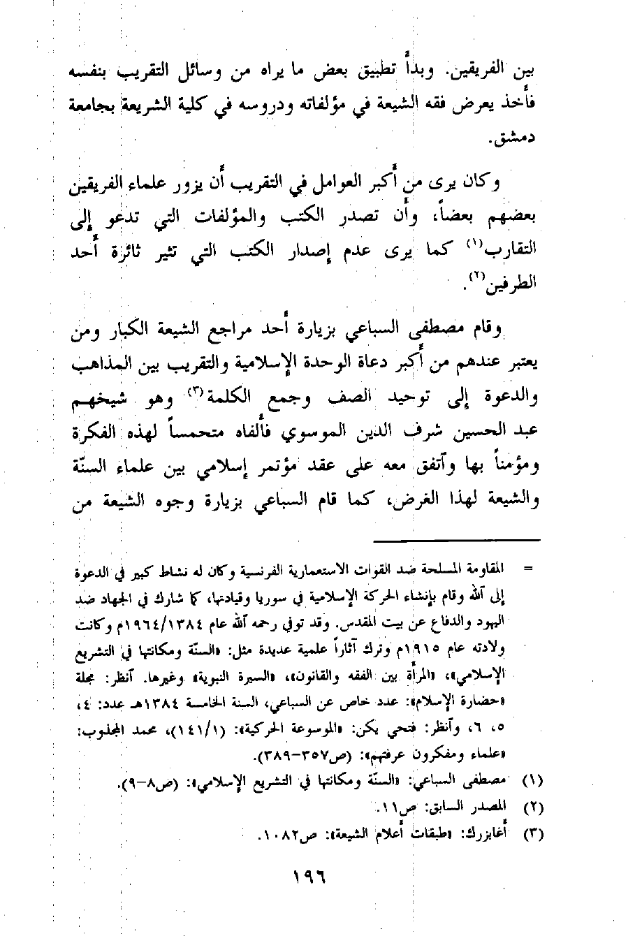 (¬3) هو الشيخ الدكتور مصطفى حسني السباعي من كبار رجالات العلم والدعوة في العالم الإسلامي عمل أستاذاً في كلية الحقوق في جامعة دمشق وكانت مساعيه وجهوده وراء إنشاء كلية الشريعة في دمشق وكان أول عميد لها، واشترك =