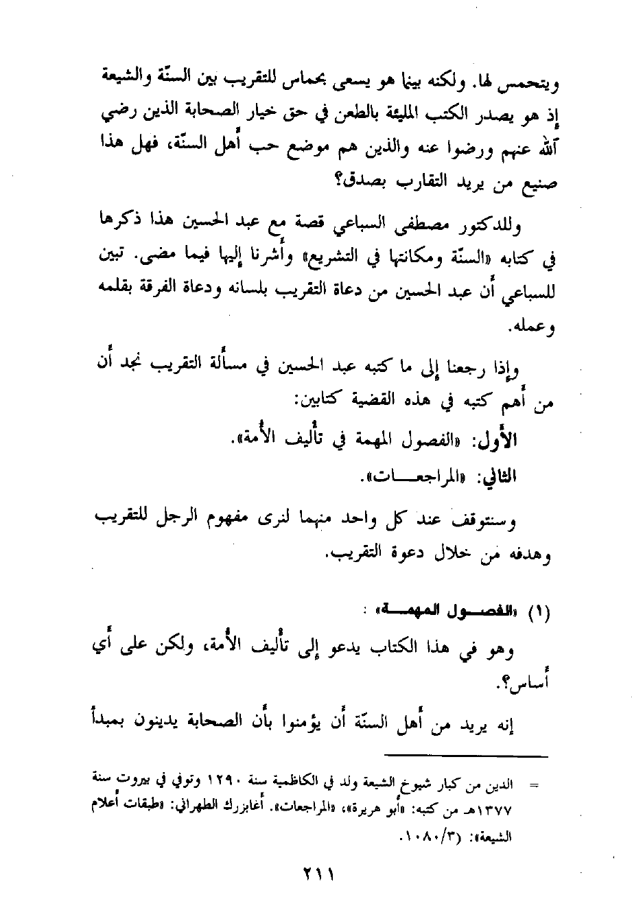 (ب) فهذا أحد آيات الشيعة وهو "عبد الحسين شرف الدين الموسوي" (¬4) . ينادي بفكرة التقارب والتآلف بين المسلمين،