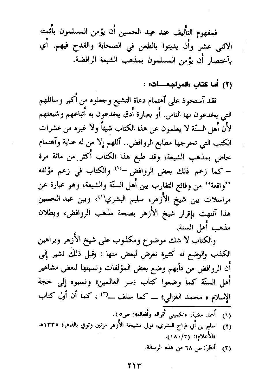 وهو يزعم أنه بهذا الأسلوب يؤلف بين الأمة، ثم يقوم بعد هذا بتأليف كتاب مستقل في هذا "الافتراء" يسميه «النص والاجتهاد» (طبع في النجف سنة 1375هـ) .