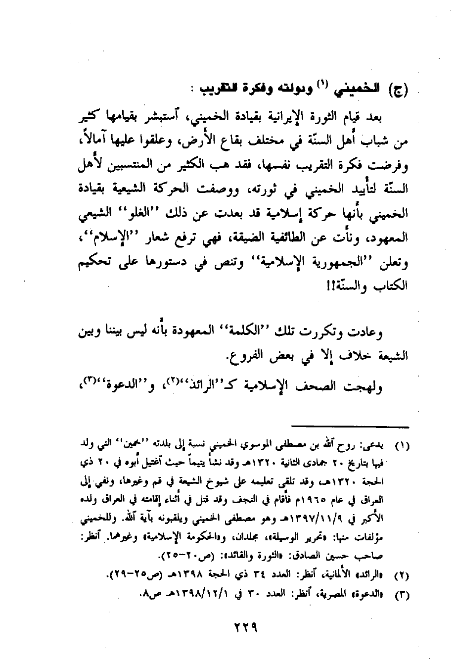 (6) إن كل محاولة لمعالجة شذوذ الروافض أو كشفه يعتبره الروافض ضد التقريب، ولذا كان جوابهم لموسى جار الله هو تأكيد شذوذهم، وللكسروي هو قتله، ولن تجدي المحاولات ما لم يتخلَّ شيوخ الشيعة عن عقائدهم وتعصبهم وتنزع عوامل الفرقة والشذوذ من كتبهم وواقعهم.