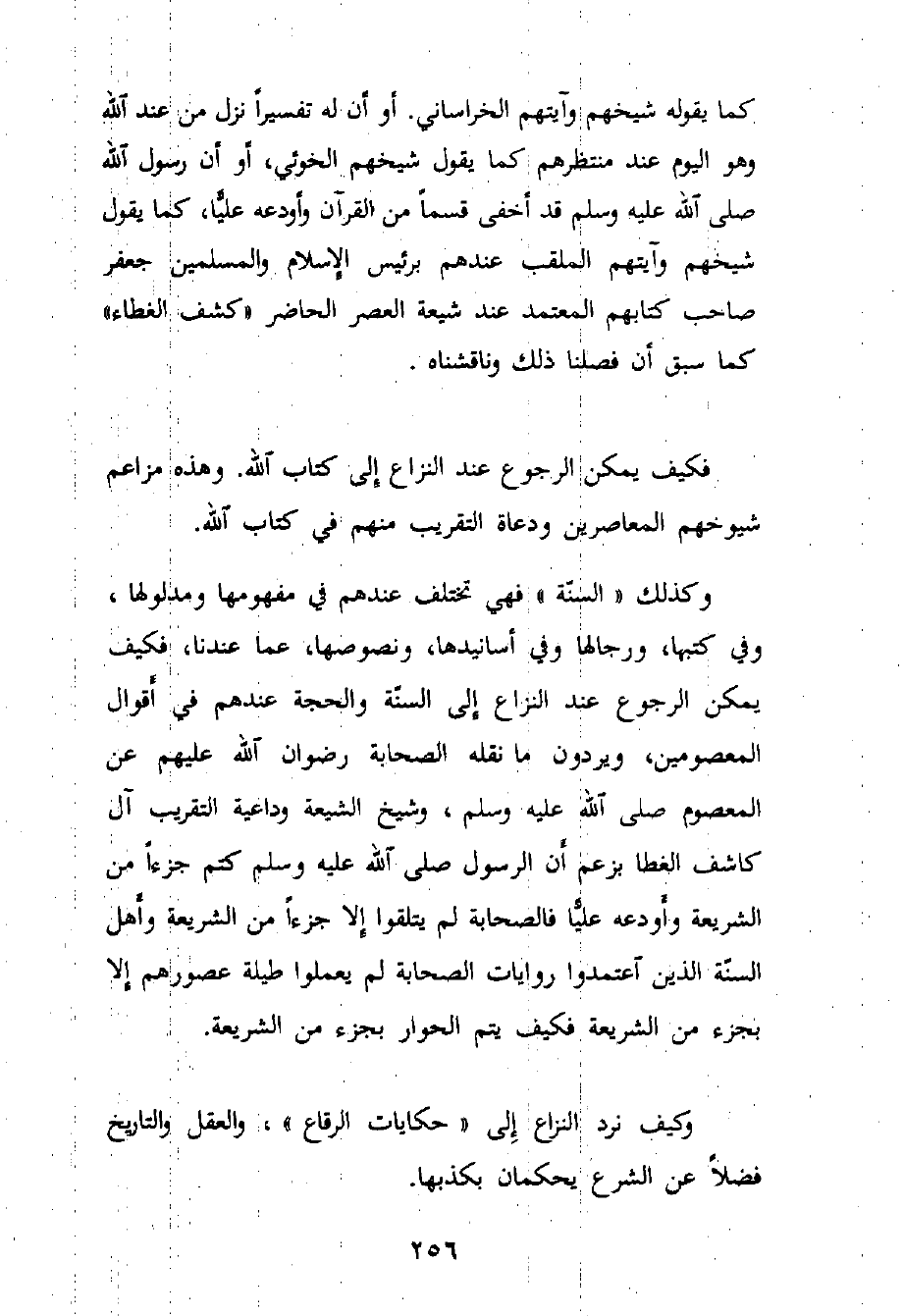 (¬2) وهم يصرحون - كما سبق - بأن الحجة ليست في السنة المنقولة عن طريق الصحابة، بل ما رواه شيوخهم - المشهورون بالكذب عند أهل السنّة - عن المعصومين الاثني عشر.