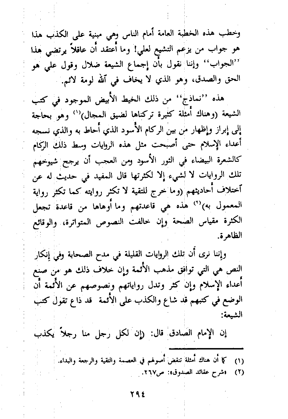 وقد اختار "الروافض" بمثل هذا النص، لأنه في «نهج البلاغة» وهو عندهم قطعي الثبوت، وصور شيخهم ميثم البحراني (¬6) ذلك بقوله: (واعلم أن الشيعة قد أوردوا هنا سؤالاً فقالوا: إن هذه الممادح التي ذكرها في حق أحد رجلين تنافي ما أجمعنا عليه من تخطئتهم وأخذهما لمنصب الخلافة، فإما أن لا يكون هذا الكلام من كلامه "ع" وإما أن يكون إجماعنا خطأ) ، ثم حملوا هذا الكلام على التقية وأنه إنما قال هذا المدح من أجل (استصلاح من يعتقد صحة خلافة الشيخين واستجلاب قلوبهم بمثل هذا الكلام) (¬7) ، أي أن علياً - في زعمهم - أراد خداع الصحابة، وأظهر لهم خلاف ما يبطن