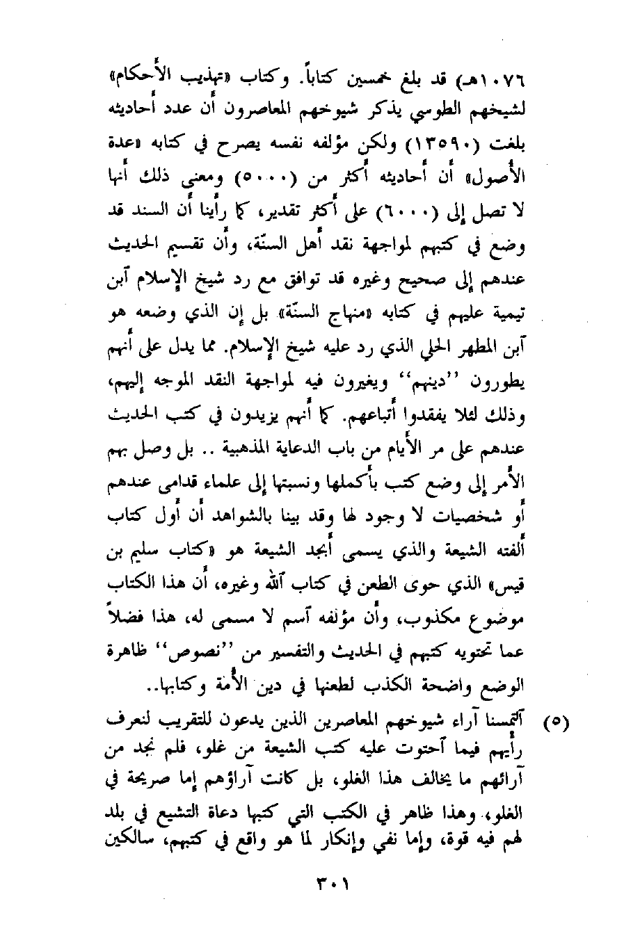 4- أن كتب الحديث عند الشيعة التي يعتبرونها مقدسة عندهم ومن علوم آل محمد، والتي ينبغي أن تكون موضع الدراسة والتقويم قبل الحديث عن فكرة التقريب، هذه الكتب قد امتدت إليها يد التحريف والزيادة والنقص؛ فـ «الكافي» في عصر الطوسي (ت 460هـ) هو ثلاثون كتاباً (كل كتاب يحتوي على طائفة كبيرة من أحاديثهم) بينما هو في عصر شيخهم الكركي (ت