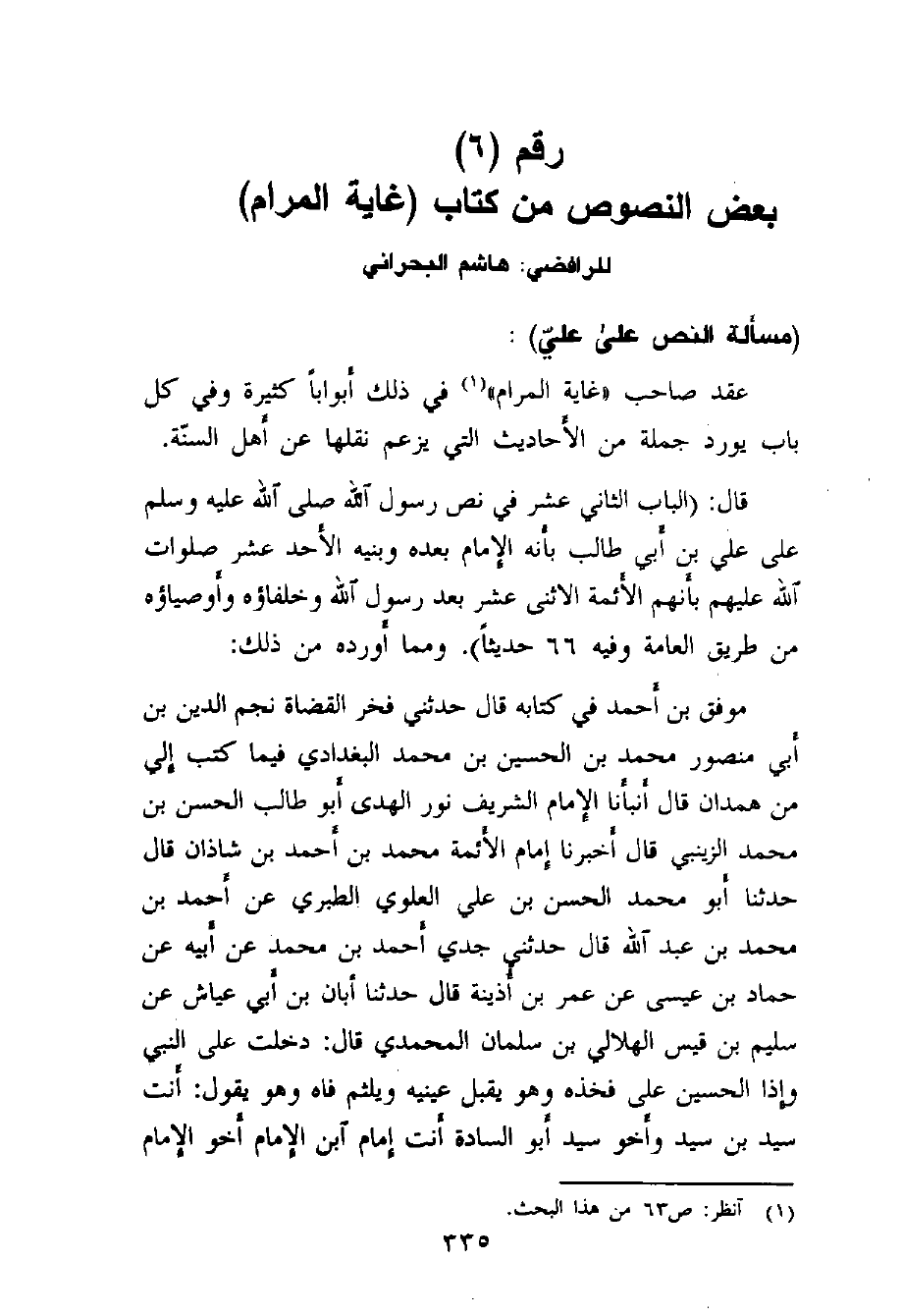 بعض النصوص من كتاب (غاية المرام)