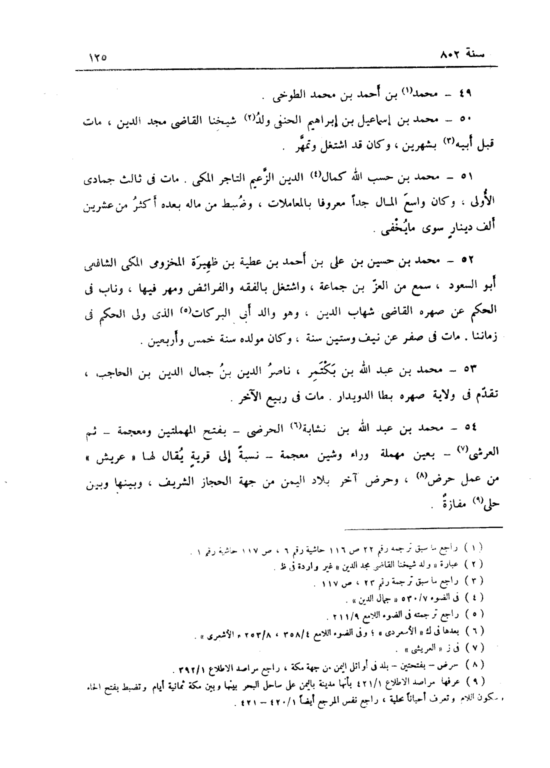 محمد بن حسب الله جمال الدين الزعيم التاجر المكي، مات في ثالث جمادى الأولى، وكان واسع المال جداً معروفاً بالمعاملات وضبط من ماله بعده أكثر من عشرين ألف دينار سوى ما أخفى.