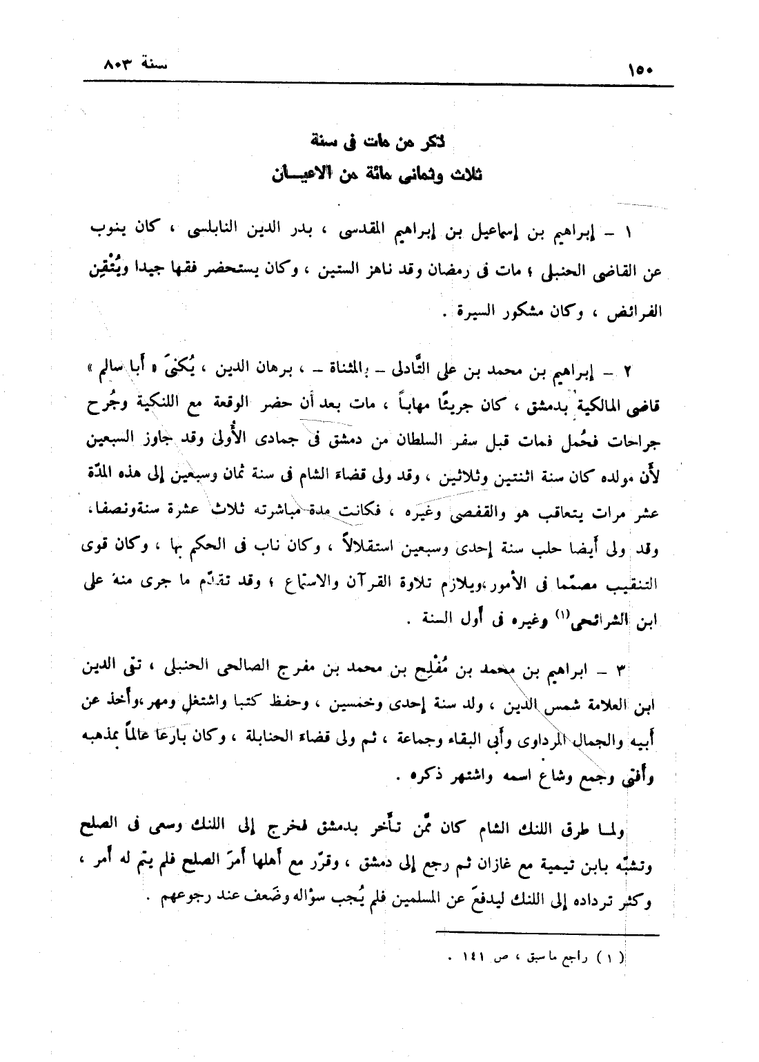 في سنة ثلاث وثمانمائة من الأعيان