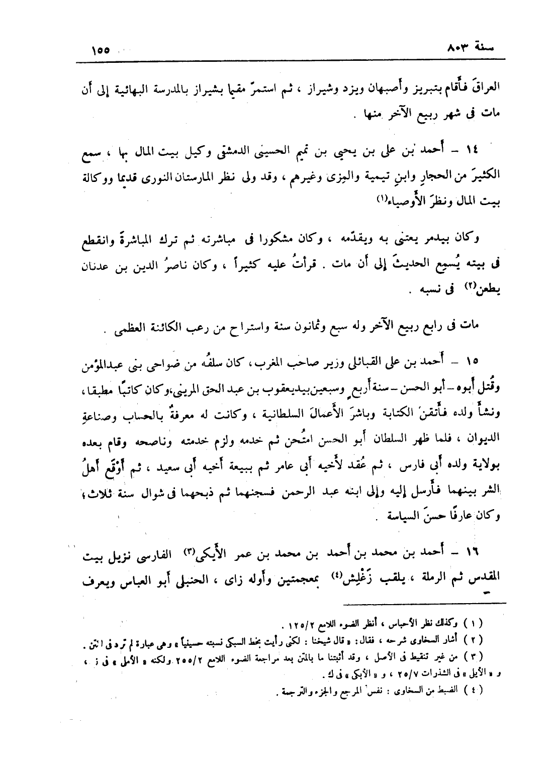 أحمد بن علي بن يحيى بن تميم الحسيني الدمشقي وكيل بيت المال بها، سمع الكثير من الحجار وابن تيمية والمزي وغيرهم، وقد ولي نظر المارستان النوري قديماً ووكالة بيت المال ونظر الأوصياء، وكان بيدمر يعتني به ويقدمه، وكان مشكوراً في مباشرته ثم ترك المباشرة وانقطع في بيته يسمع الحديث إلى أن مات، قرأت عليه كثيراً، وكان ناصر الدين بن عدنان يطعن في نسبه؛ مات في رابع ربيع الآخر وله سبع وثمانون سنة واستراح من رعب الكائنة العظمى.
