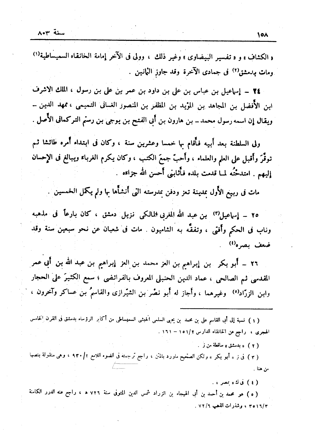 إسماعيل بن عبد الله المغربي المالكي نزيل دمشق كان بارعاً في مذهبه وناب في الحكم وأفتى وتفقه به الشاميون، مات في شعبان عن نحو سبعين سنة، وقد ضعف بصره.