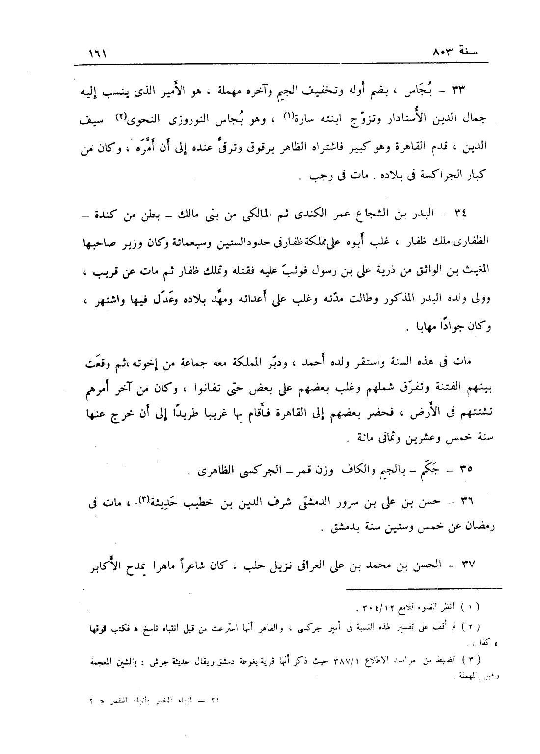 بجاس وهو الأمير الذي ينسب إليه جمال الأستادار، وتزوج ابنته سارةوهو بجاس النوروزي النحوي سيف الدين، قدم القاهرة وهو كلبير فاشتراه الظاهر برقوق وترقى عنده إلى أن أمره: وكان من كبار الجراكسة في بلاده؛ مات في رجب.