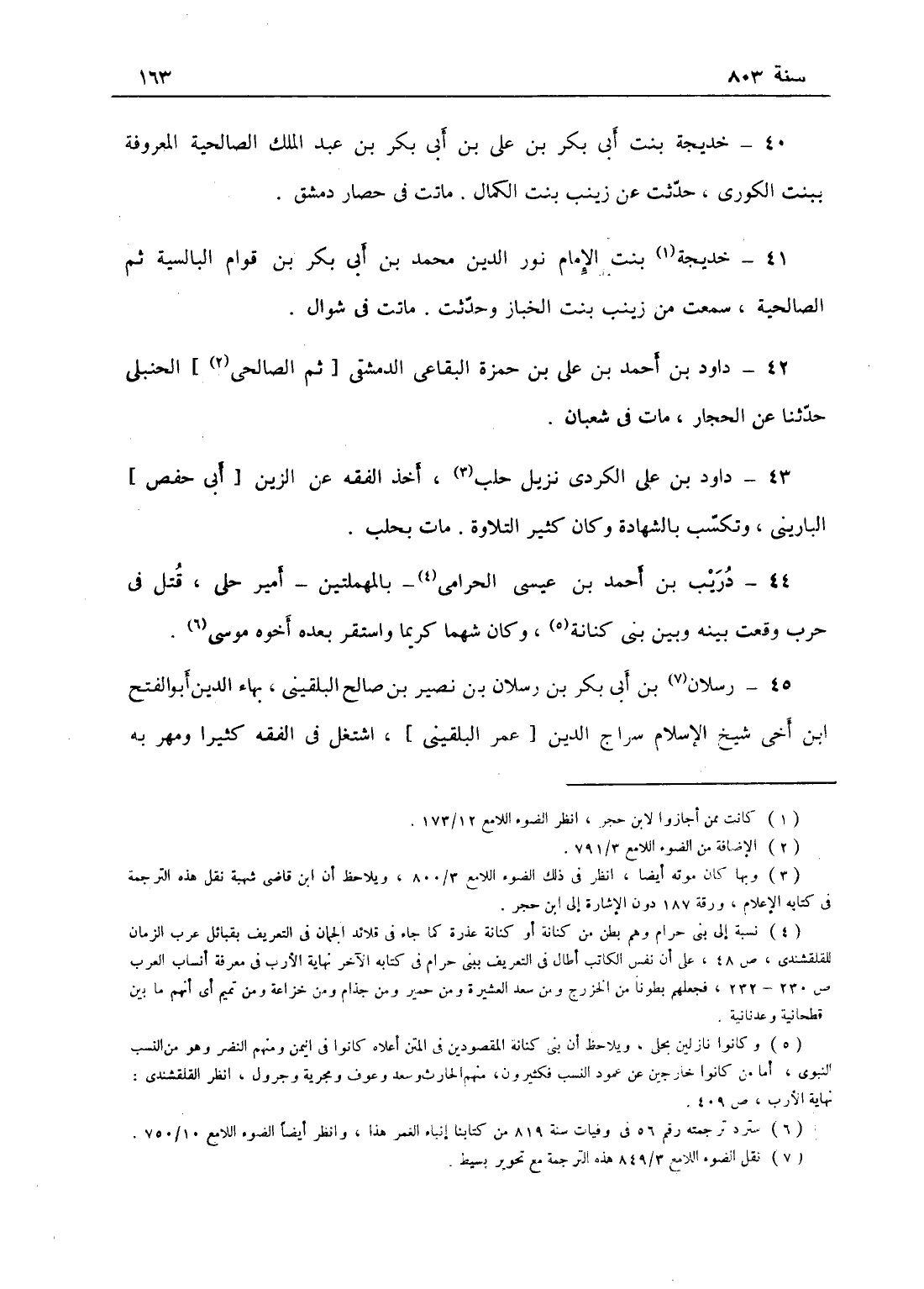 داود بن أحمد بن علي بن حمزة البقاعي الدمشقي الحنبلي حدثنا عن الحجار مات في شعبان.