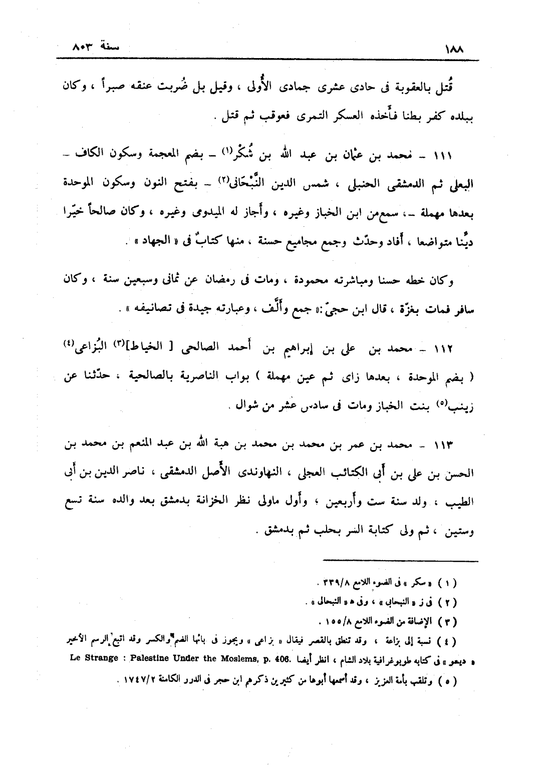 محمد بن علي بن إبراهيم بن أحمد الصالحي البزاعي بواب الناصرية بالصالحية حدثنا عن زينب بنت الخباز ومات في السادس عشر من شوال.