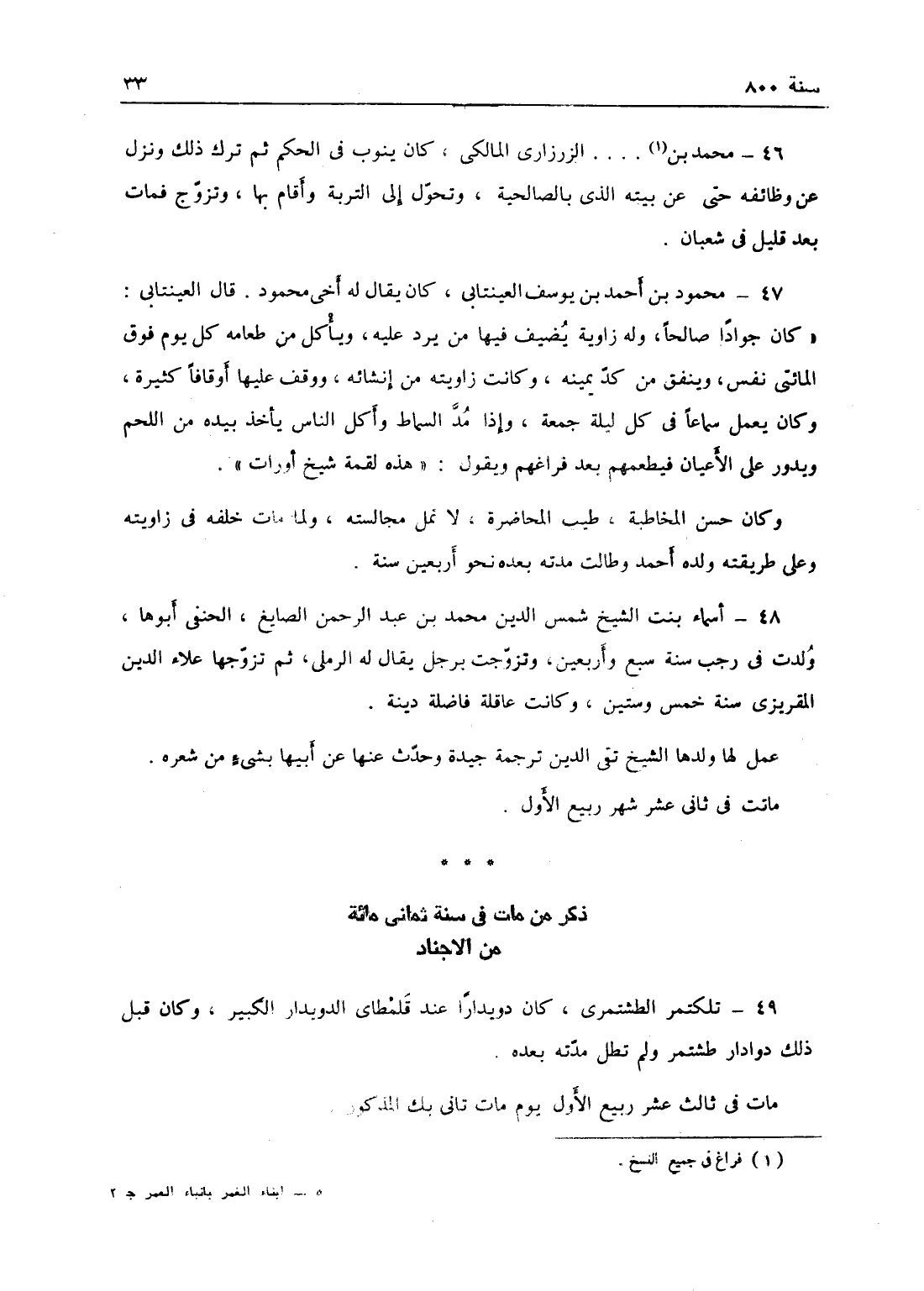محمد بن..... الزرزاري المالكي، كان ينوب في الحكم ثم ترك ذلك ونزل عن وظائفه حتى عن بيته الذي بالصالحية وتحول إلى التربة فأقام بها وتزوج فمات بعد قليل في شعبان.